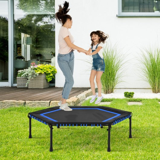50" Hexagonal Fitness Trampoline Exercise Rebounder with Pad-Blue