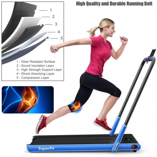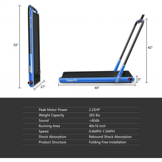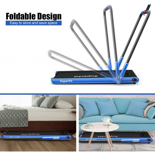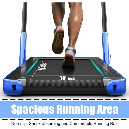 2-in-1 Folding Treadmill with RC Bluetooth Speaker LED Display-Blue