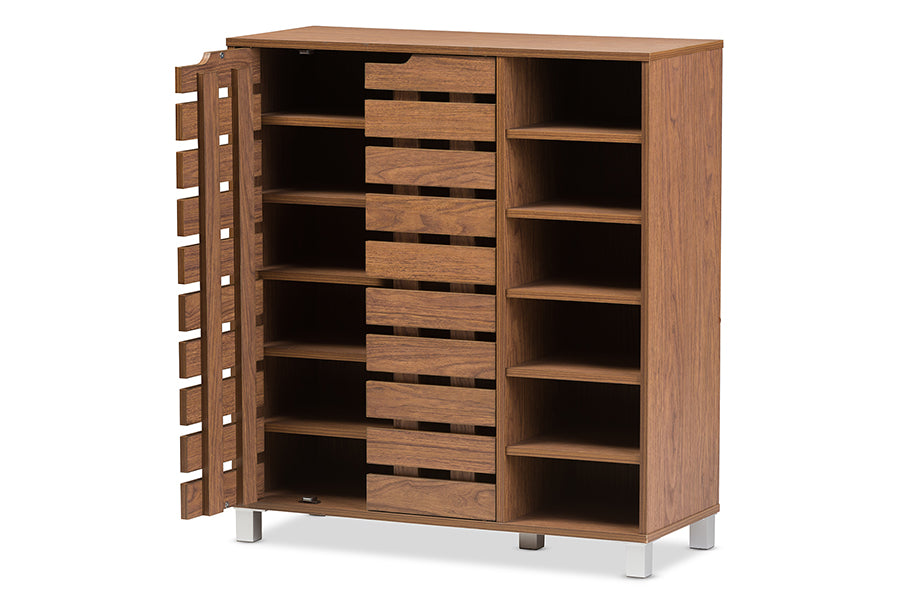 Baxton Studio Shirley Modern and Contemporary "Walnut" Medium Brown Wood 2-Door Shoe Cabinet with Open Shelves