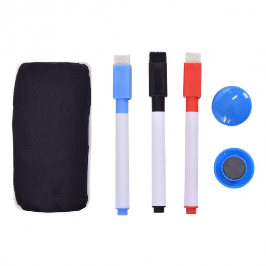 The whiteboard is suitable for many occasions such as meeting school teaching and other presentation use at home or work. Constructed of sturdy aluminum frame with safe plastic corners the board is designed to offer a reliable use in the long term. It also comes with free colored magnetic buttons a whiteboard eraser and three dry-wipe whiteboard pens. The two moveable wall hooks attached for you to place it wherever you want. The board features with a removable duster pen tray and a cleaner eraser provides a handy space to leave and display your messages appointments schedules reminders and more. The board can be applied to three dry-wipe whiteboard pens and two magnets. Brand new and high quality Modern design durable magnetic whiteboard Sturdy aluminum frame with safe plastic corners Applied to three dry-wipe whiteboard pens and two magnets Comes with a removable duster pen tray and a cleaner eraser Easy and safe for stable hanging Easy to install fully reusable