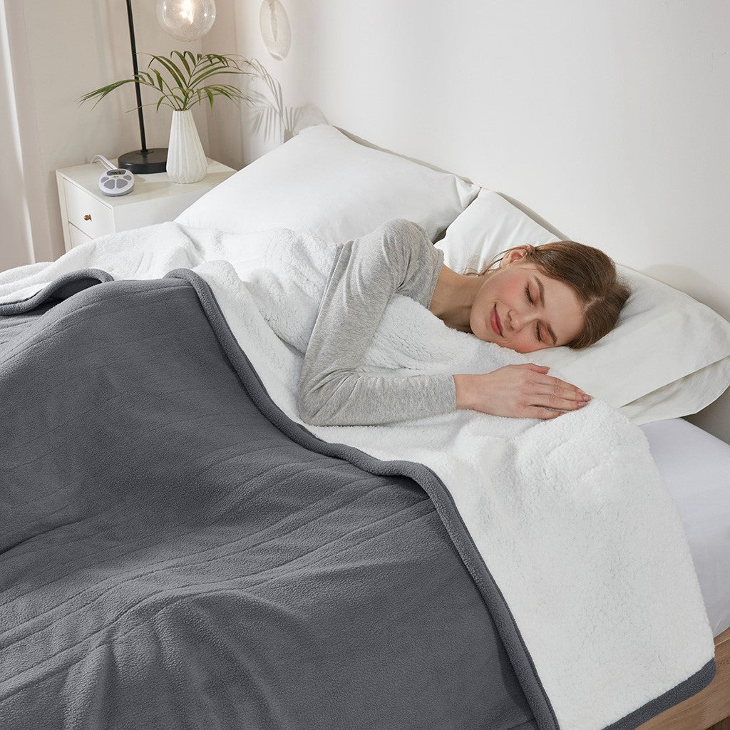 Fleece To Sherpa Heated Blanket - Full ST54-0103 By Olliix
