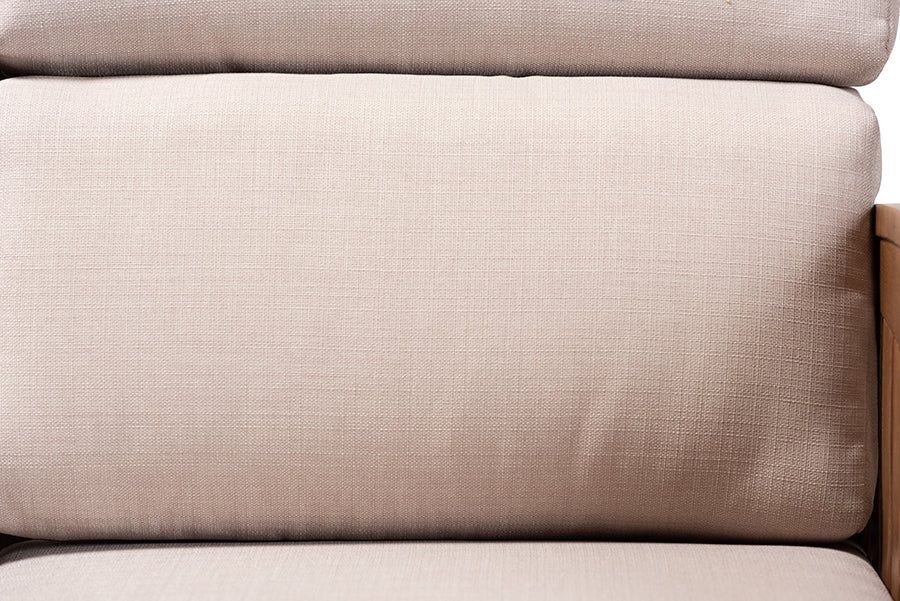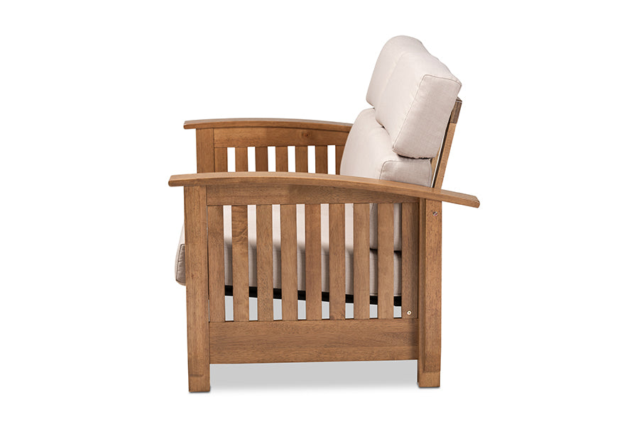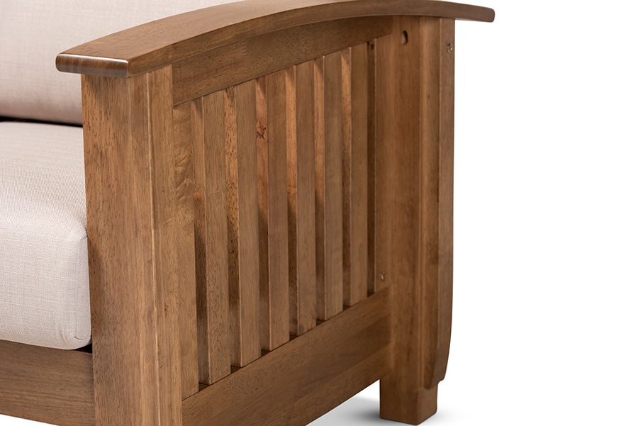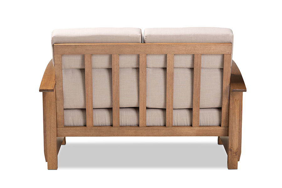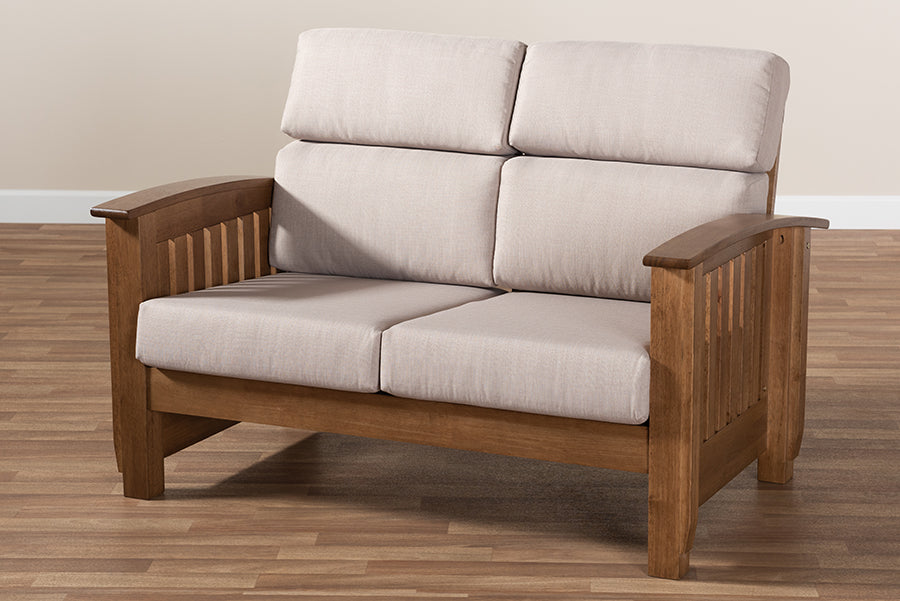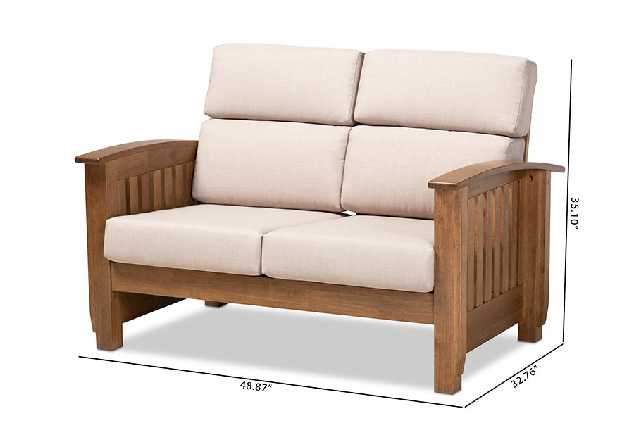 Baxton Studio Charlotte Modern Classic Mission Style Taupe Fabric Upholstered Walnut Brown Finished Wood 2-Seater Loveseat