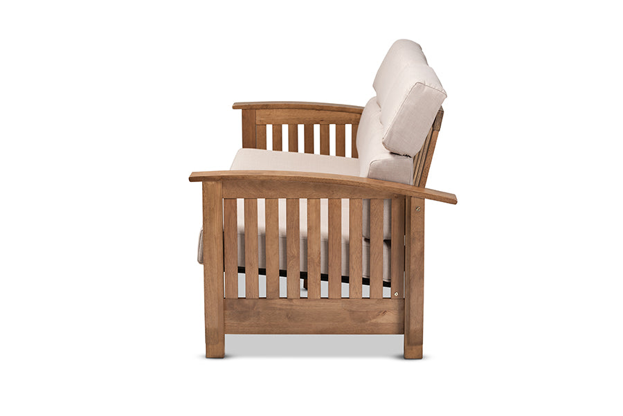 Baxton Studio Charlotte Modern Classic Mission Style Taupe Fabric Upholstered Walnut Brown Finished Wood 3-Seater Sofa