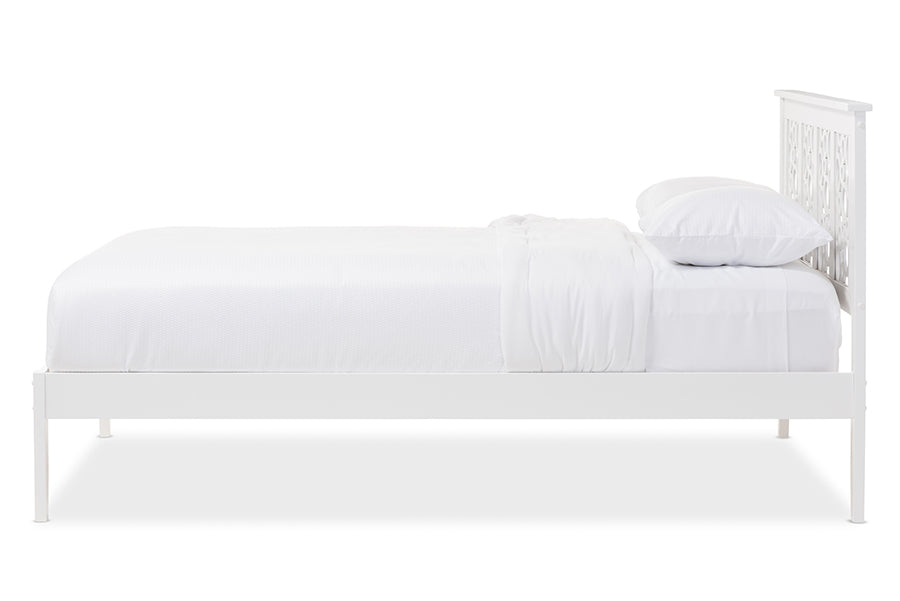 Baxton Studio Celine Modern and Contemporary Geometric Pattern White Solid Wood Full Size Platform Bed