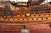 Are you looking for a perfect display combination? Our San Felipe 37” model and tabletop display case combo will sure to set your home or office apart! The Model: This is an exclusive edition of the San Felipe, where the model is uniquely identified by a laser cut hull serial number. The ornaments on her body made her more beautiful than any other ships at her time. Thus, to recapture the beauty of this ship into the model, we have used the most exotic wood that is available, the highest quality brass fittings that we can cast and more than 200 hours to put together this magnificent model. Examples of wood use include rosewood, ebony, and mahogany. These materials are transformed into art pieces by the skillful hand of the master craftsmen. If you look closer, you can see an evenly smooth surface of wood on the hull. It was done more beautifully than most pieces of fine furniture. From the bow to the stern, you can see hundreds of shiny brass fittings and cannons. Wood pieces of different shades and colors are carefully selected and used to create an impressive look. The stern is the most decorated area with hundreds of small brass ornaments, brass railing, figurines, and lanterns. You will more than likely be falling in love with the artwork on the different decks of this model. All decks are done by putting together many rectangular small wooden pieces. There are round shape stairs connected the main deck and the forecastle deck. The main deck is also equipped with a couple of lifeboats, which even come with their own paddles. And then there are the skylight, ship bell, and ship wheel…etc. The model comes with its original flag and rests on a steady wooden base with attached metal nameplate. 100% assembled, ready for display. The Display Case: This beautiful tabletop display case was made out of hardwood and painted in dark mahogany color. It has distinctive designs that add elegance and beauty when displayed in your home or office. It is 100% fully assembled and comes with plexiglass panels on all sides. It features the curves on the sides of the case which enable it to accommodate models with wide yards. This case is very effective when it comes to preventing dust particles as well as keeping your valuable tall ship looking new and protected at all time. It is a must-have for model ship enthusiasts or passionate collectors. Purchase this combo and save now on both item and shipping cost. Notes: Both items will be shipped safely together on a wood pallet via Ground freight. Video instruction on how to put the model into the display case is available via YouTube.