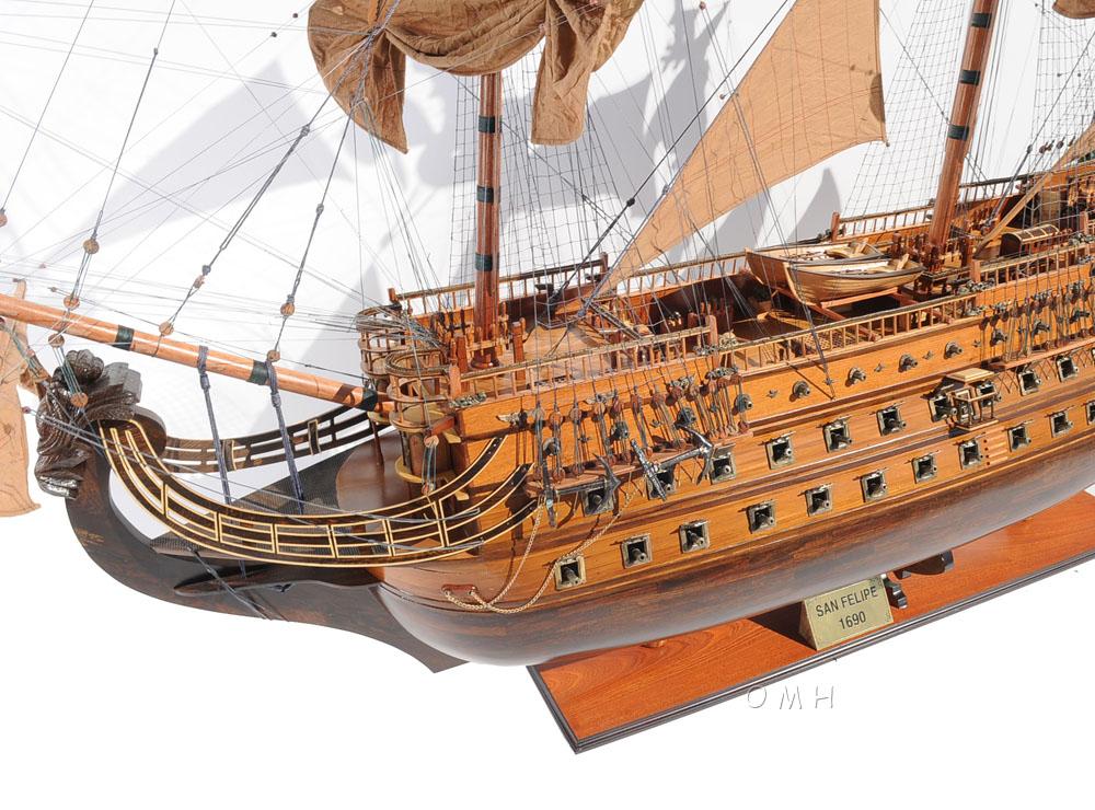 The San Felipe, launched in 1690, was one of the most beautiful Spanish galleons of the XVII century. She was the lead ship of the famous Spanish Armada. The San Felipe displaced more than 1000 tons and was armed with 96 cannons, enabling her to take on the most formidable ships in the French and British navies. The San Felipe’s role in the war against the British and French was to help protect Spanish settlements and harbors, to transport treasures, and to safeguard the long and hazardous passage back to Spanish ports. In 1705, the San Felipe participated in a furious and heroic battle between 12 Spanish ships and 35 British ships. After 24 hours of battle, she was captured by an English ship, but was so badly damaged that she could not be salvaged as a prize. She went down to the bottom of the ocean with several tons of gold.