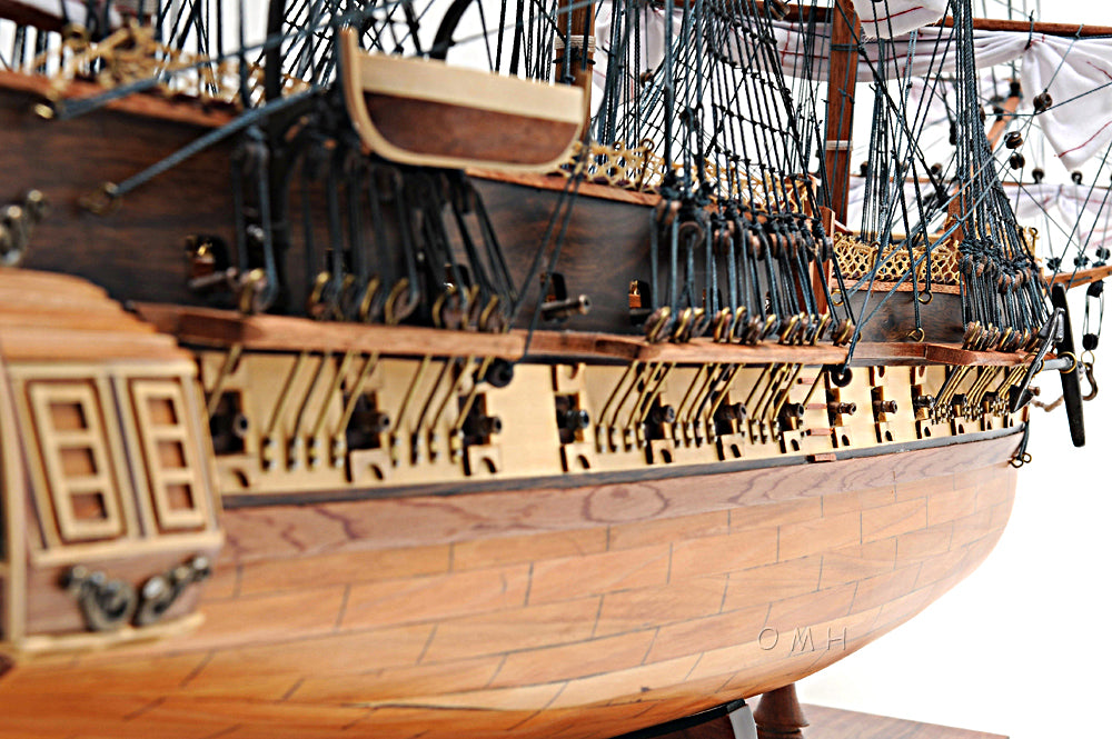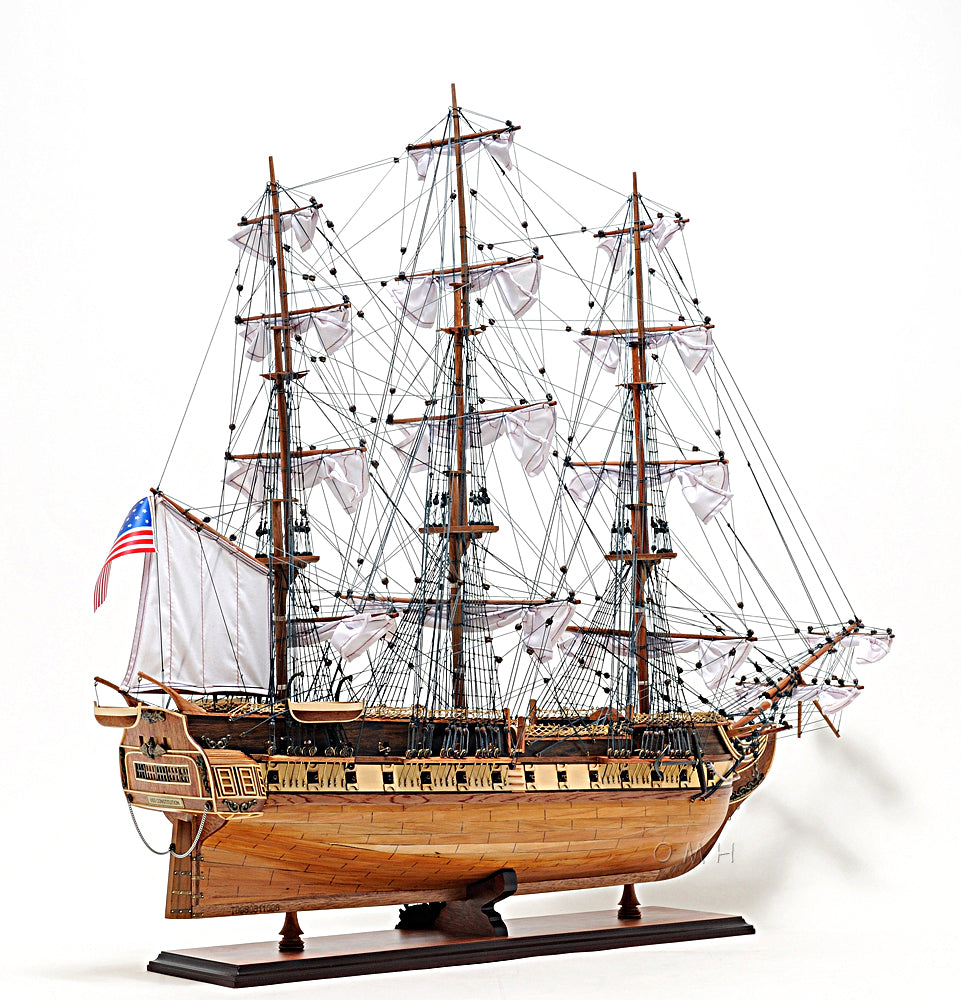 Are you looking for a perfect display combination? Our USS Constitution 29” model and display case combo will sure to set your home or office apart! The Model: This is Museum-quality, Fully Assembled edition of the famous USS Constitution "Old Ironside". It is part of an exclusive edition where the hull is laser cut with a unique serial number. The model is 100% hand built from scratch using “plank on frame” construction method. Our master craftsmen have spent more than 100 hours to finish it. One bold feature that makes this model stand out is the art of wood use. Rosewood, mahogany, teak and other exotic woods are carefully selected to accent each part of the model. This replicas magnificent detail include metal anchors and cannons, authentic crow’s nest, advanced intricate rigging, rolled sails, wood inlay hull, inlay deck, an ornate stern and many more. No plastic parts! It comes on a solid wood base, with metal nameplate. Click HERE for a video of this ship The Display Case: This beautiful tabletop display case was made out of hardwood and painted in dark mahogany color. It has distinctive designs that add elegance and beauty when displayed in your home or office. It is 100% fully assembled and comes with plexiglass panels on all sides. It features the curves on the sides of the case which enable it to accommodate models with wide yards. This case is very effective when it comes to preventing dust particles as well as keeping your valuable tall ship looking new and protected at all time. It is a must-have for model ship enthusiasts or passionate collectors. Purchase this combo and save now on both item and shipping cost. Notes: Both items will be shipped safely via FedEx Ground. Video instruction on how to put the model into the display case is available via YouTube.