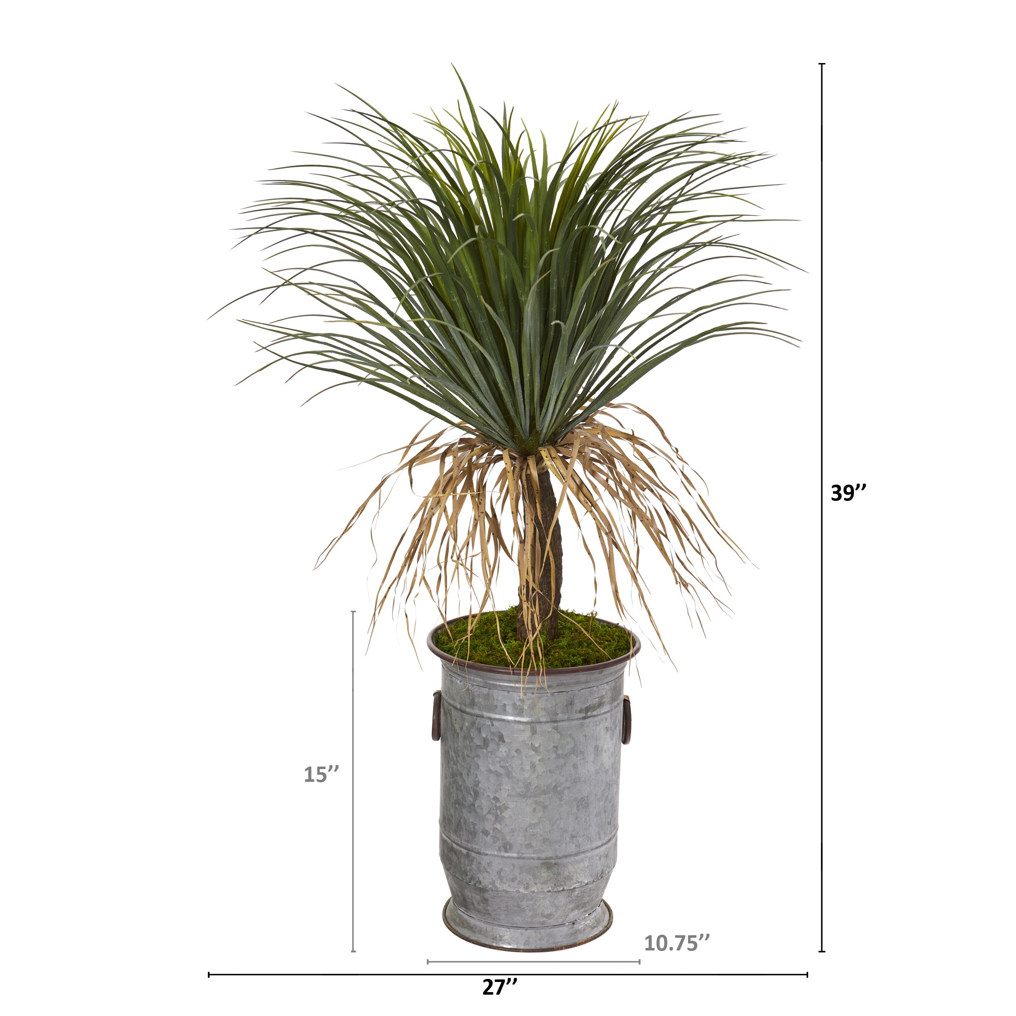 Bring natural looking texture to tight spaces with the help of this artificial plant boasting loosely tufted shoots of molina grass in naturally occurring hues. Great for adding a sense of life to everyday environments, this fake plant stands 39" high from a vintage metal planter.
