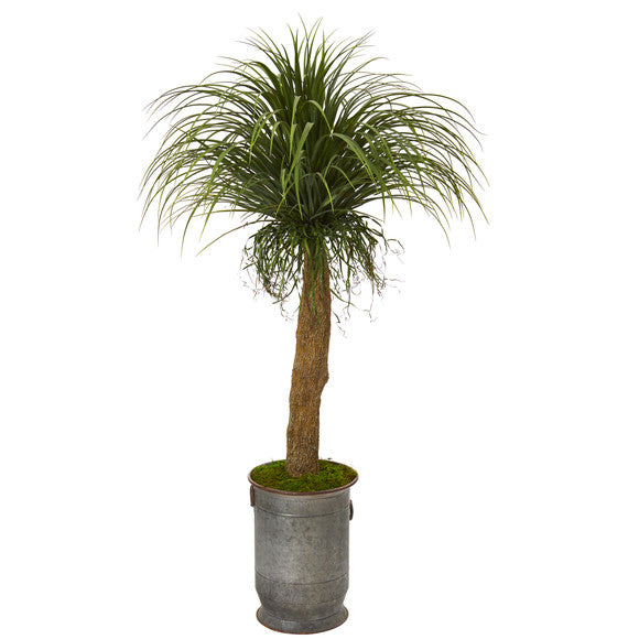 Nearly Natural 64" Pony Tail Palm Artificial Plant in Copper Trimmed Metal Planter