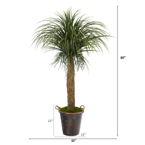 Nearly Natural 5' Pony Tail Palm Artificial Plant in Decorative Metal Pail with Rope