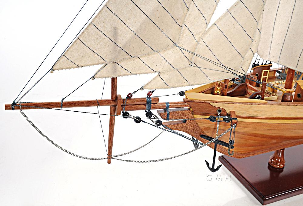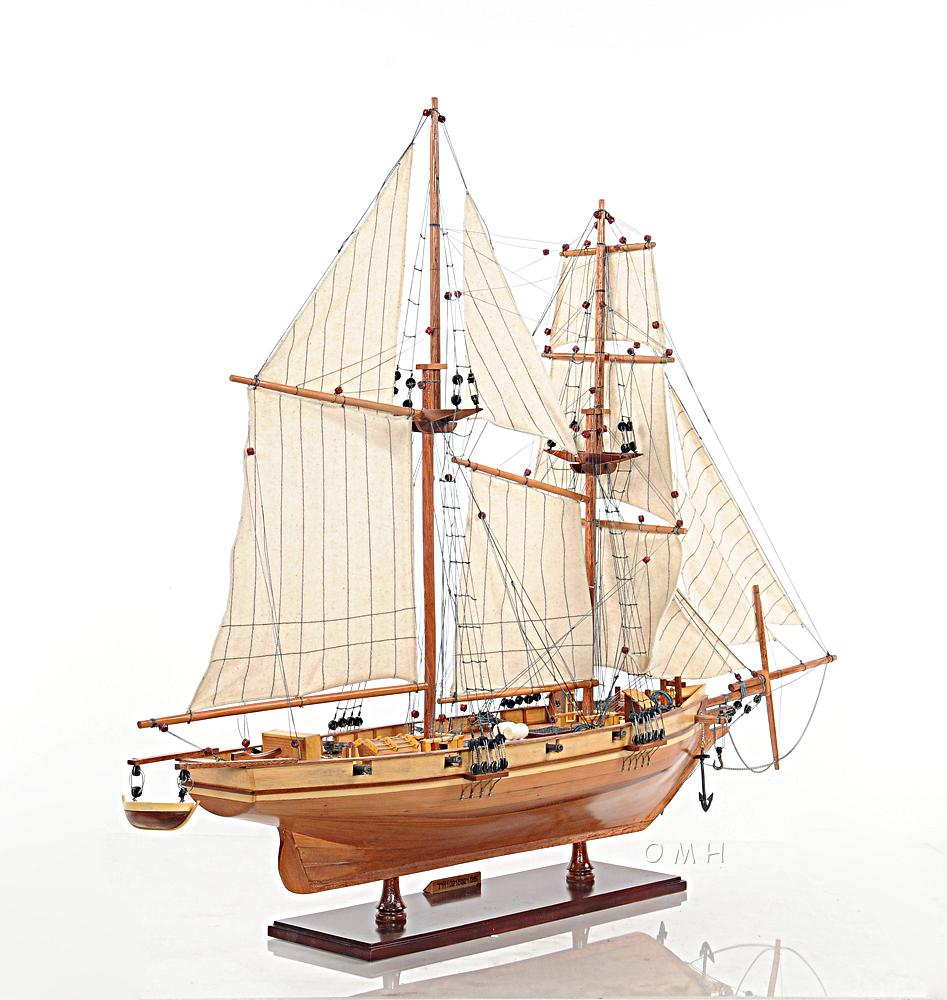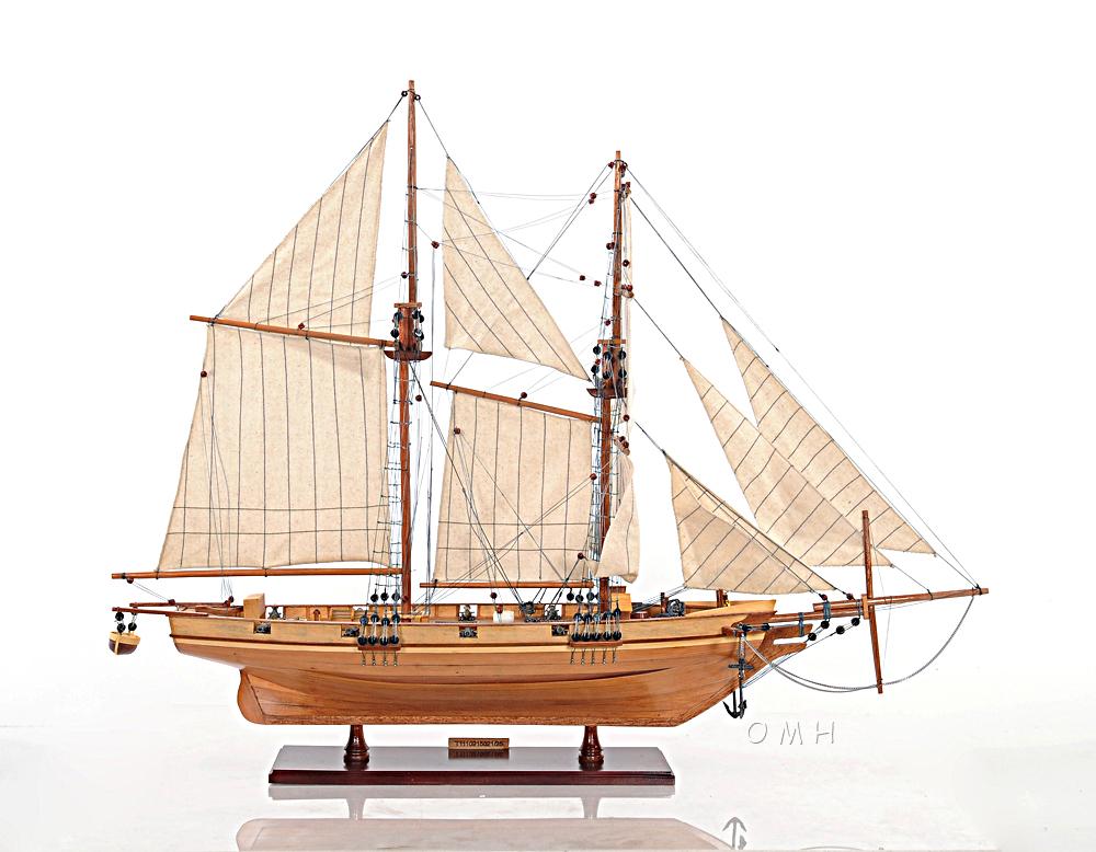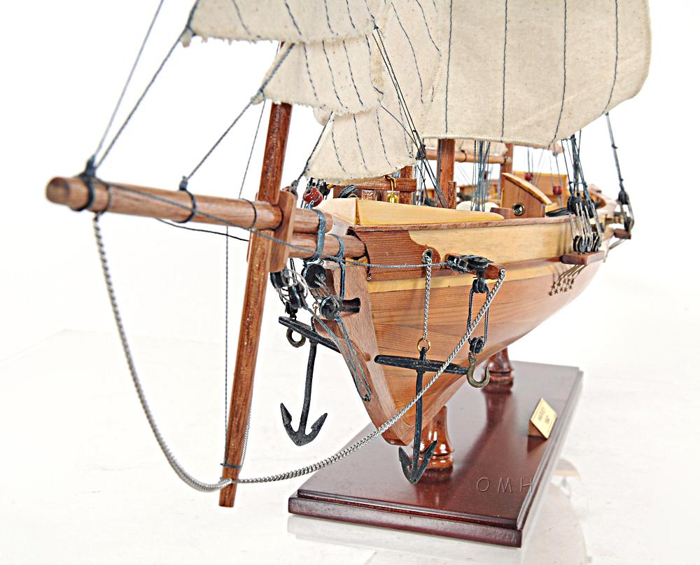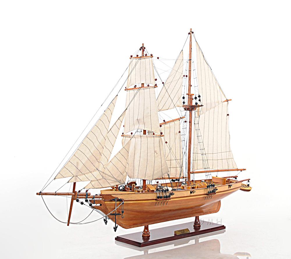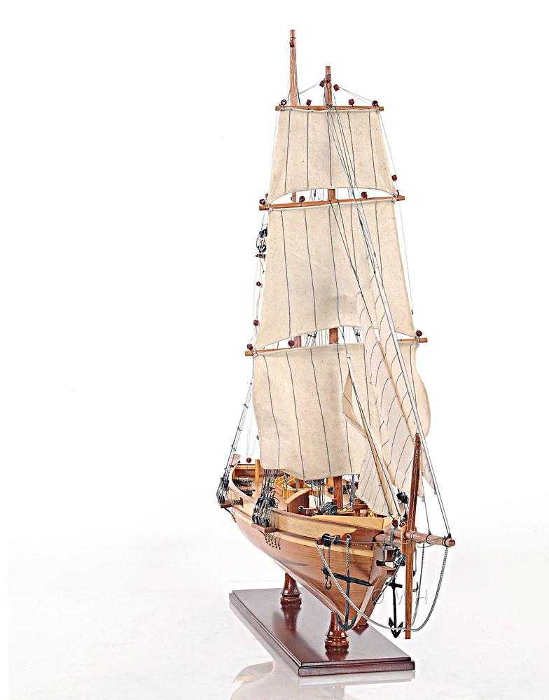 This is a high-quality, FULLY ASSEMBLED replica of the clipper that sailed out of the port of Galveston, Texas, in the mid-1800s. Master craftsmen using historical photographs, drawings or original plans meticulously handcraft these highly detailed wood models from scratch. They are built to scale with high-grade wood such as: western red cedar, rosewood, and mahogany. They are 100% hand built individually using plank-on-frame construction method and are similar to the building of actual ships. Each model requires hundreds of hours to finish and must go through a demanding quality control process before leaving the workshop. This beautiful Harvey model features: a varnished two tone colors wood on the hull, plank on frame, and two decks. The front bowsprit and three large masts are connected securely using advanced rigging and lines painstakingly knotted and fastened by hand. Each yard has an attached hand-stitched unfurled sails made of fine linen. Metal anchors and a wooden rudder are visible on the front and rear of the ship. On the deck, there are metal stationed cannons, wooden windlass, bell tower, and many other spectacular ornaments. This model comes standard with a solid wood base and brass nameplate. It’ll make a perfect gift for home or office decorator, boat enthusiast or passionate collector.