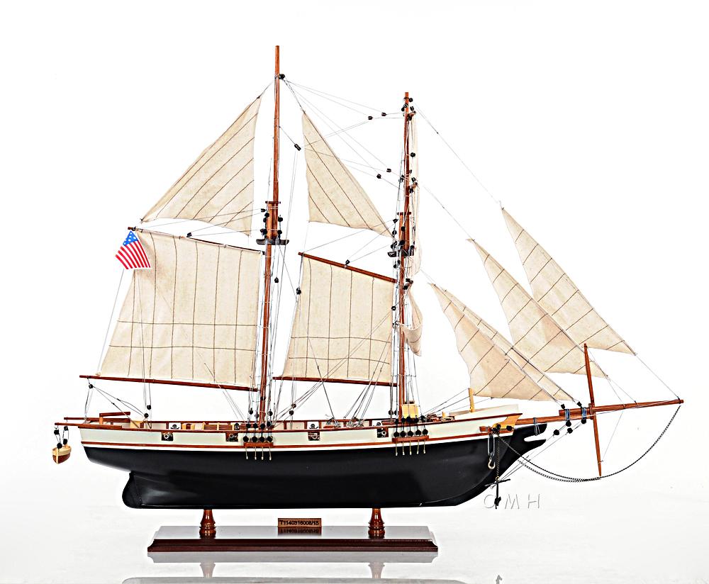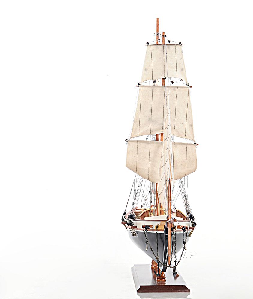 This is a high-quality, FULLY ASSEMBLED replica of the clipper that sailed out of the port of Galveston, Texas, in the mid-1800s. Master craftsmen using historical photographs, drawings or original plans meticulously handcraft these highly detailed wood models from scratch. They are built to scale with high-grade wood such as: western red cedar, rosewood, and mahogany. They are 100% hand built individually using plank-on-frame construction method and are similar to the building of actual ships. Each model requires hundreds of hours to finish and must go through a demanding quality control process before leaving the workshop. This beautiful Harvey model features: two tone painted black and white colors on the hull, plank on frame, and two decks. The front bowsprit and three large masts are connected securely using advanced rigging and lines painstakingly knotted and fastened by hand. Each yard has an attached hand-stitched unfurled sails made of fine linen. Metal anchors and a wooden rudder are visible on the front and rear of the ship. On the deck, there are metal stationed cannons, wooden windlass, bell tower, and many other spectacular ornaments. This model comes standard with a solid wood base and brass nameplate. It’ll make a perfect gift for home or office decorator, boat enthusiast or passionate collector.
