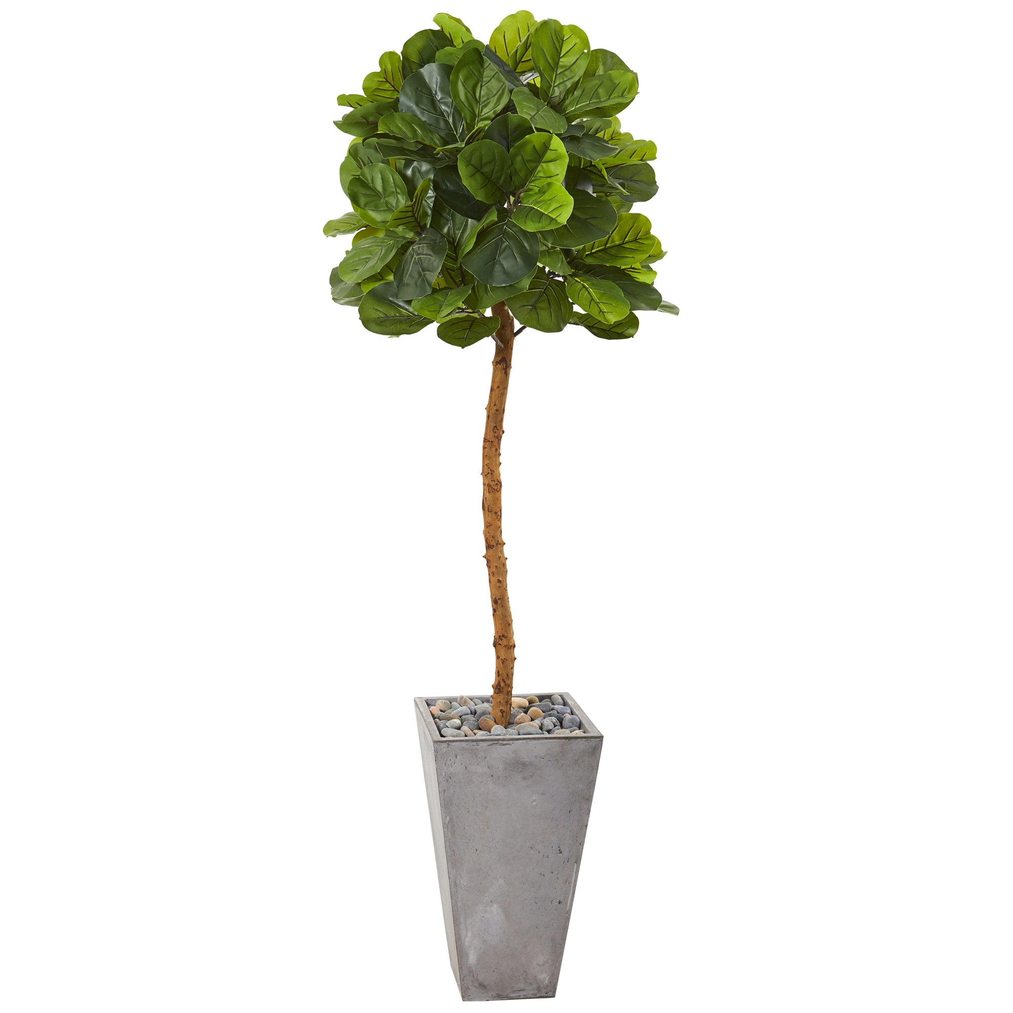 Nearly Natural 70" Fiddle Leaf Artificial Tree in Cement Planter (Real Touch)