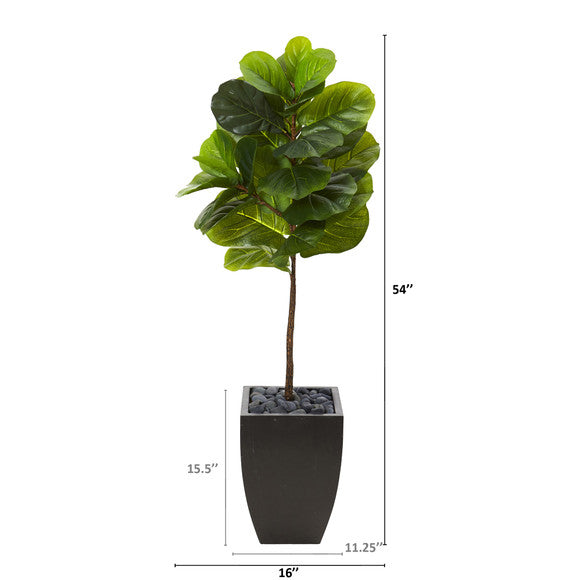Freshen up even the tightest spaces in your home or office with the help of this artificial fiddle leaf tree boasting a canopy of thick, glossy leaves in bright, vivid hues, sprouting atop a skinny, texturized trunk - all of which feel real to the touch. Standing 4.5' high from a black planter accented with river rocks, this fake tree can instantly enhance any space it inhabits.
