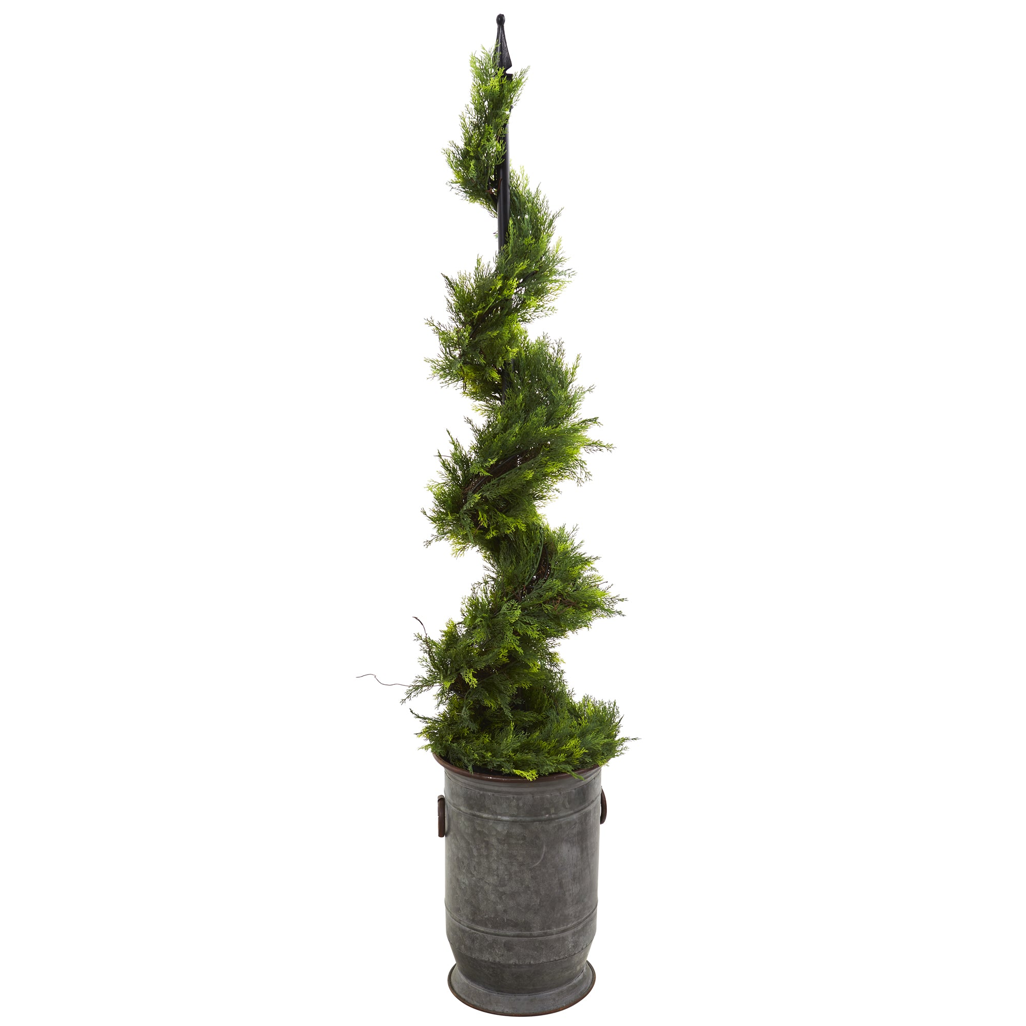 Nearly Natural 58" Cypress Artificial Spiral Topiary Tree in Vintage Metal Planter