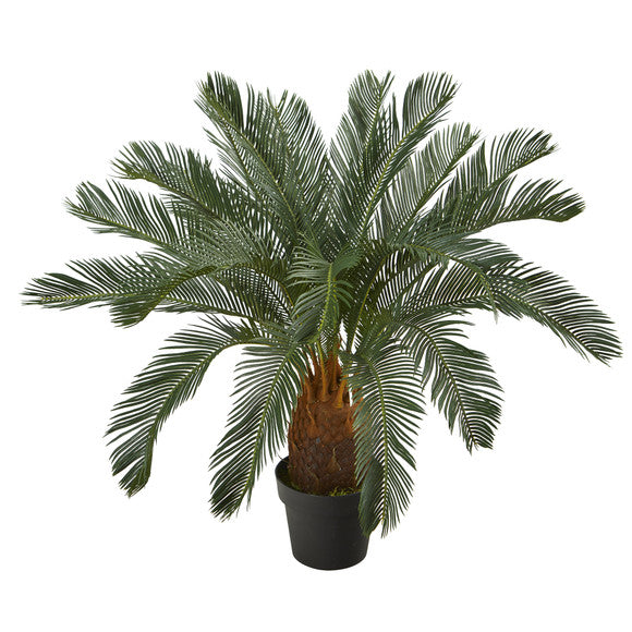 Greenify your home or office space with the help of this artificial cycas tree. Designed from the finest materials, this high-quality fake tree boasts an intricate collection of lifelike fronds that fan out with a natural quality, each detailed with little leaves in a palette of naturally occurring hues. Standing 3' tall from an accompanying nursery planter, this artificial tree would inject a sense of natural color wherever displayed.