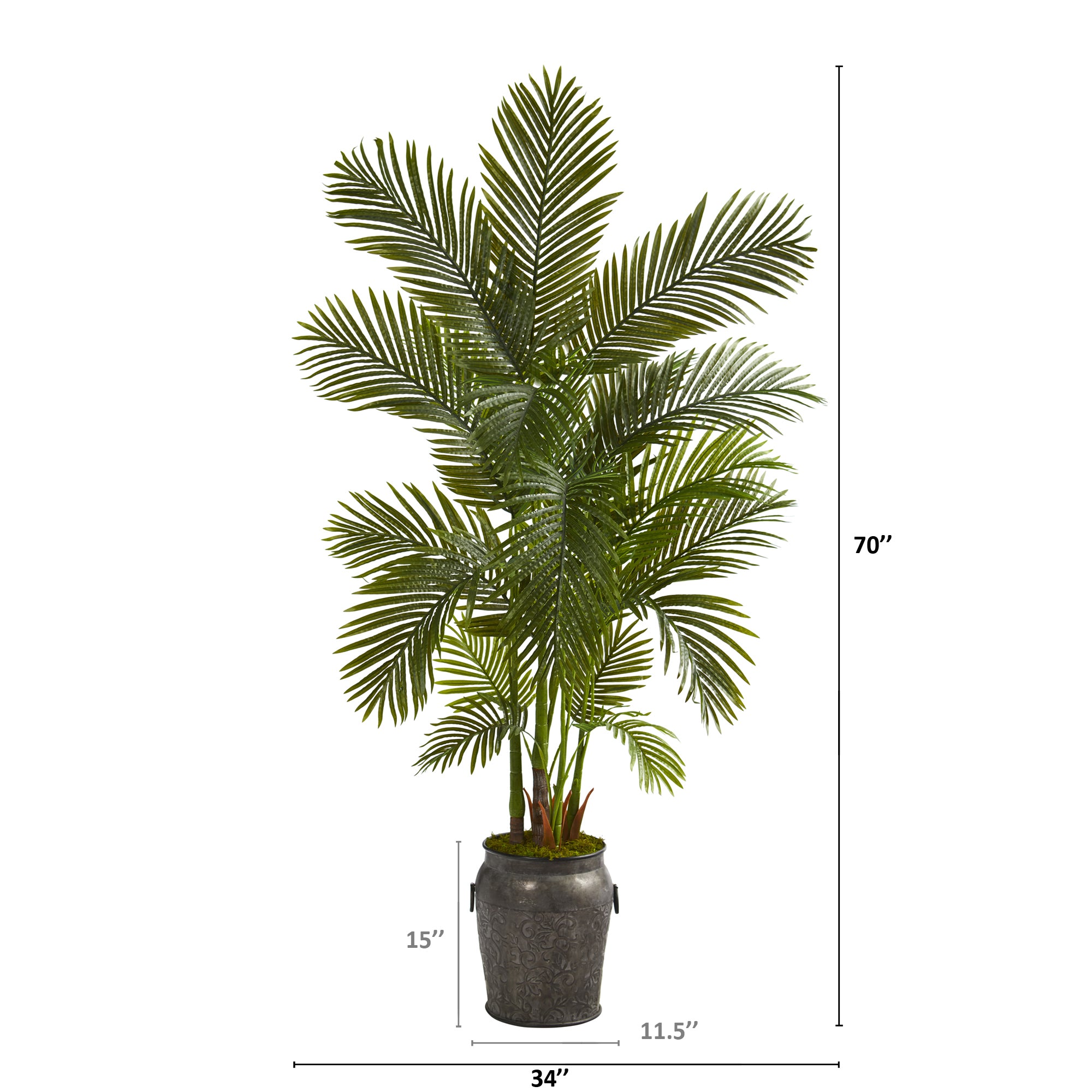 Nearly Natural 70" Areca Palm Artificial Tree in Metal Planter