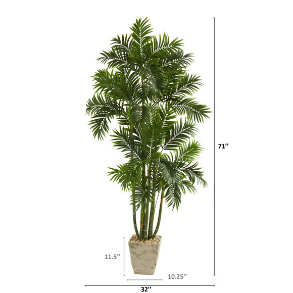 Nearly Natural 71" Areca Palm Artificial Tree in Country White Planter