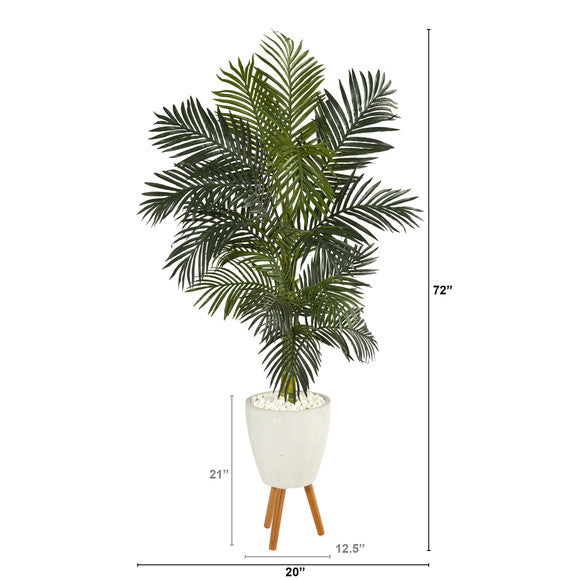Nearly Natural 6' Golden Cane Artificial Palm Tree in White Planter with Stand