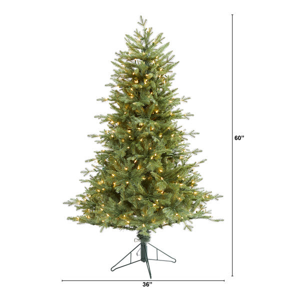Nearly Natural 5' New Hampshire Spruce Artificial Christmas Tree with 300 Warm White Lights and 618 Bendable Branches