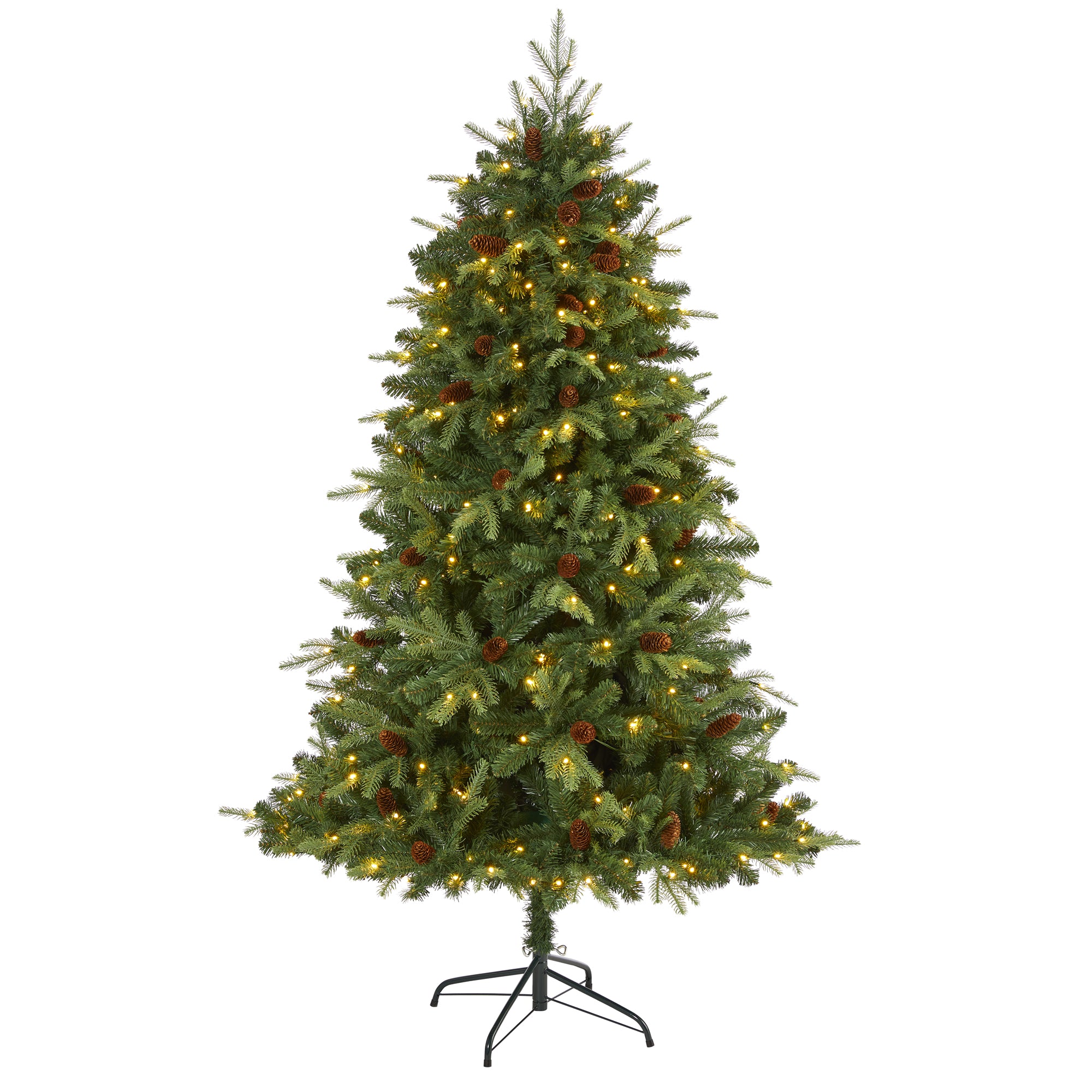 6' Wellington Spruce 'Natural Look' Artificial Christmas Tree with 300 Clear LED Lights and Pine Cones
