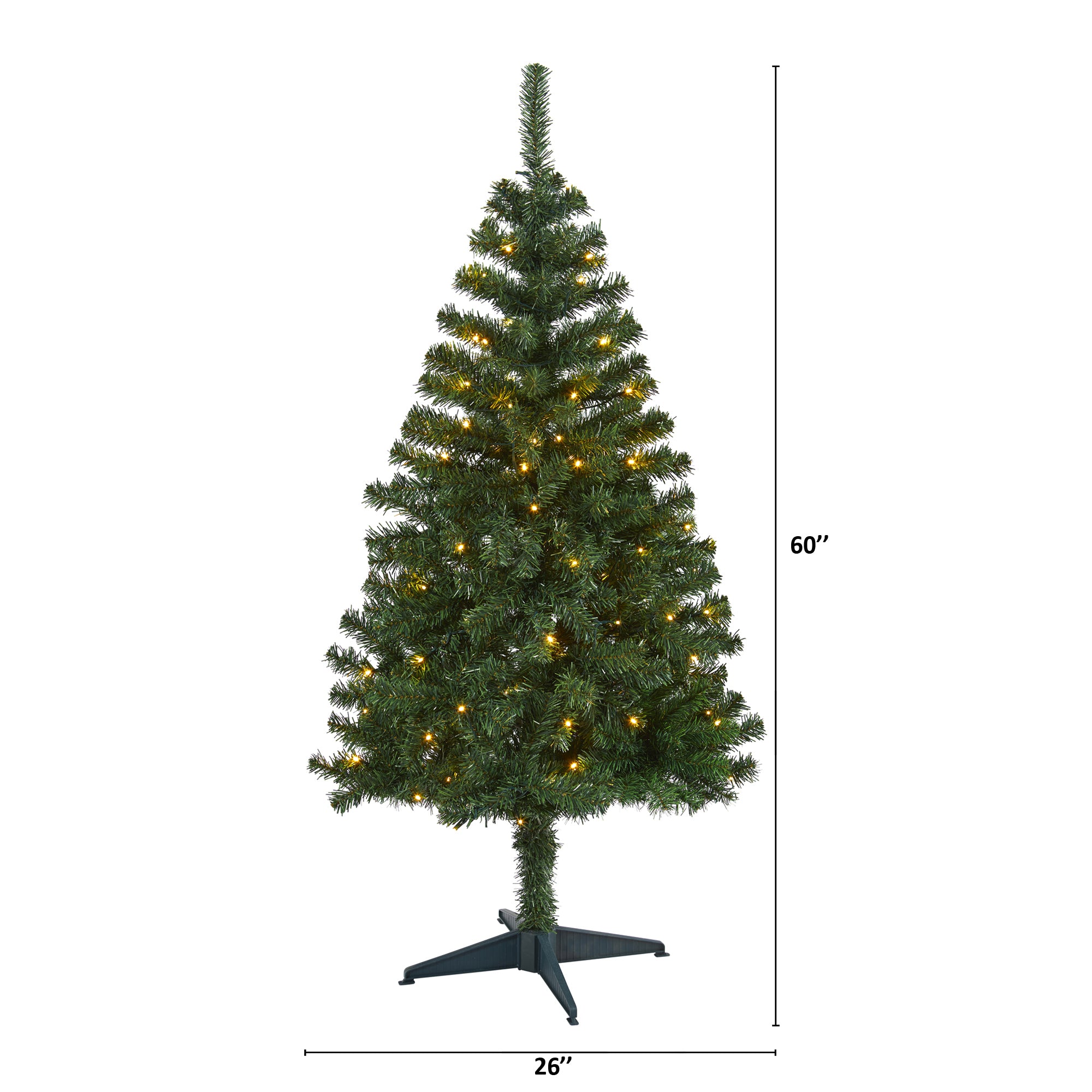 Light up your home or office this holiday by creating a traditional Christmas scene with the help of this easy and effortless Northern Tip Pine Artificial Christmas Tree. Completely maintenance-free, this realistic looking fake Christmas tree boasts a thick collection of evergreen foliage made up of 350 bendable branch tips, perfect for accenting with your own decorative ornaments. Arriving pre-strung with 150 clear LED lights to eliminate tangles and carefully stabilized on an accompanying stand, this versatile 5' tall artificial Christmas tree will not only make decorating a breeze but ensure your home is always holiday-dressed for years to come.