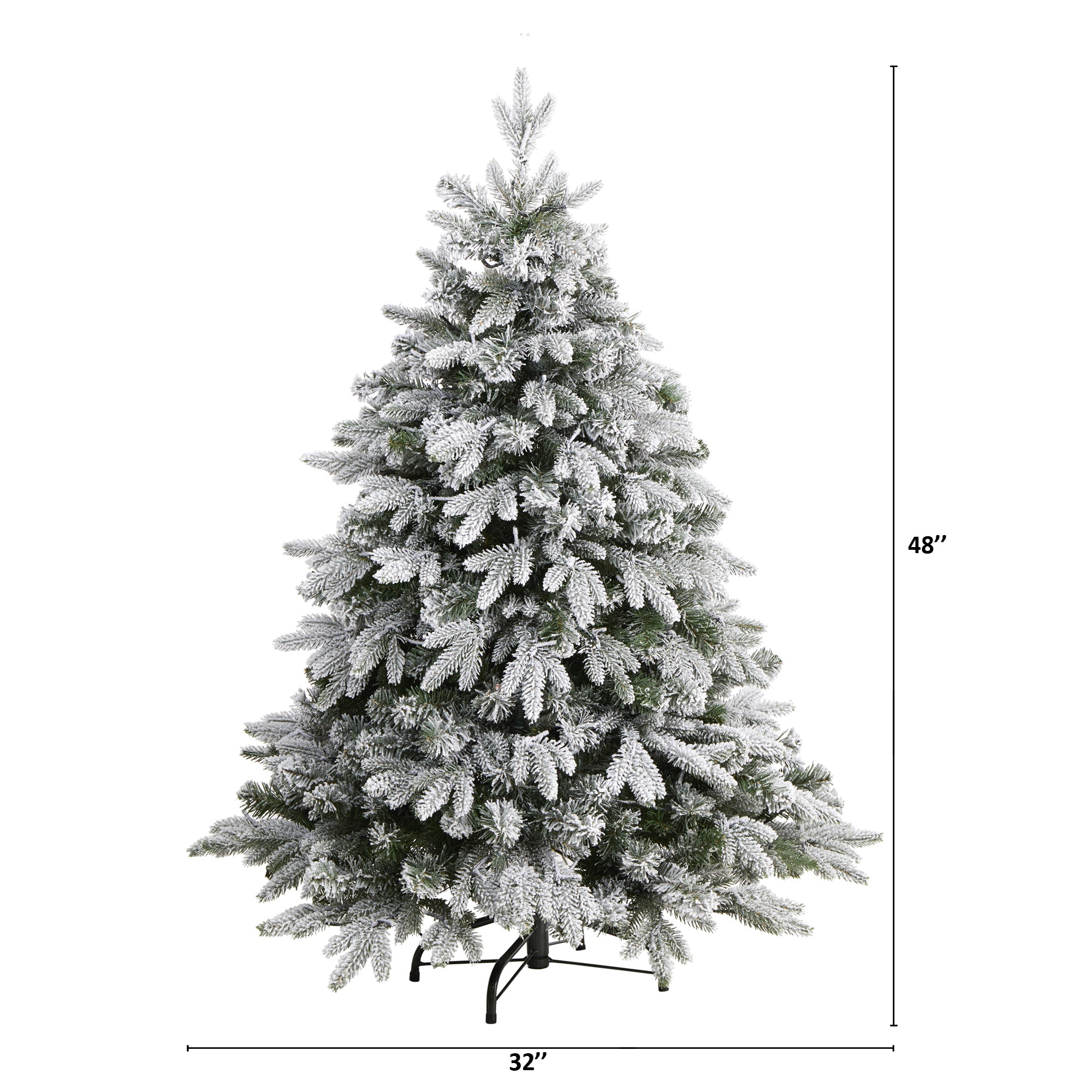 Nearly Natural 4' Flocked Full Bodied Swedish Spruce Artificial Christmas Tree with 170 Clear LED Lights and 418 Bendable Branches