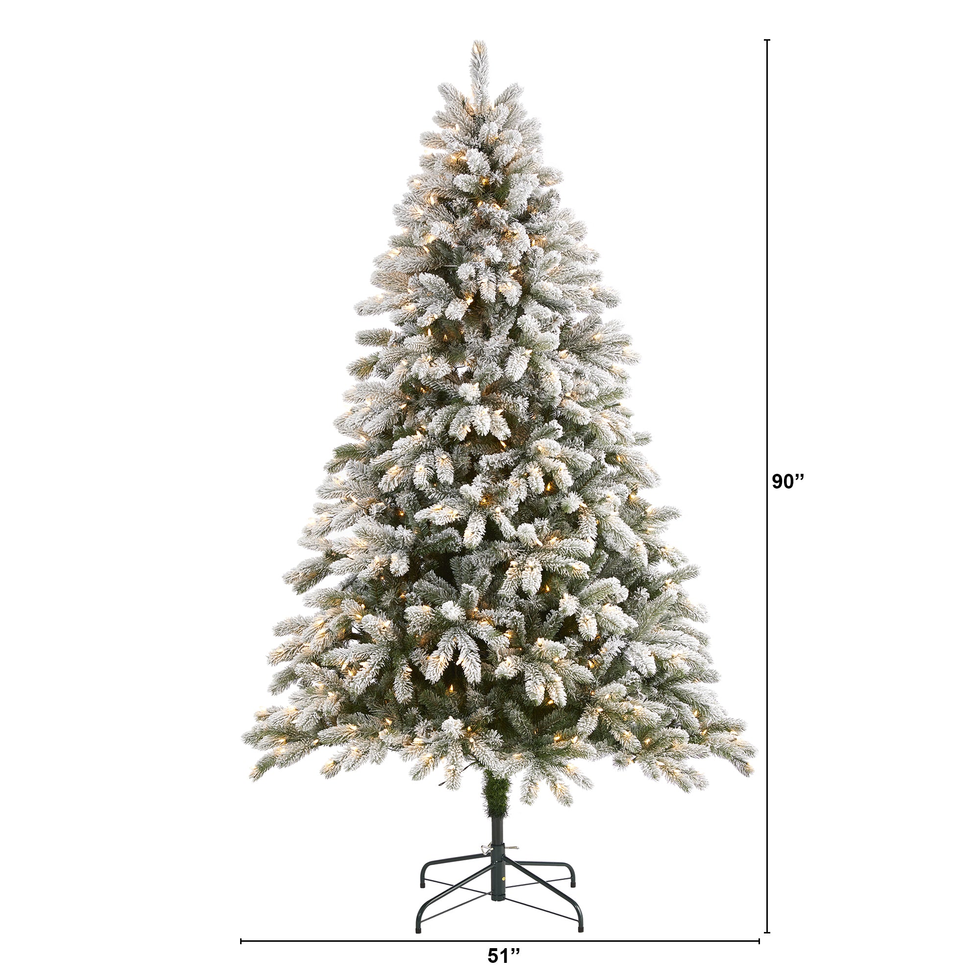Nearly Natural 7.5' Flocked South Carolina Spruce Artificial Christmas Tree with 600 Clear Lights and 1537 Bendable Branches