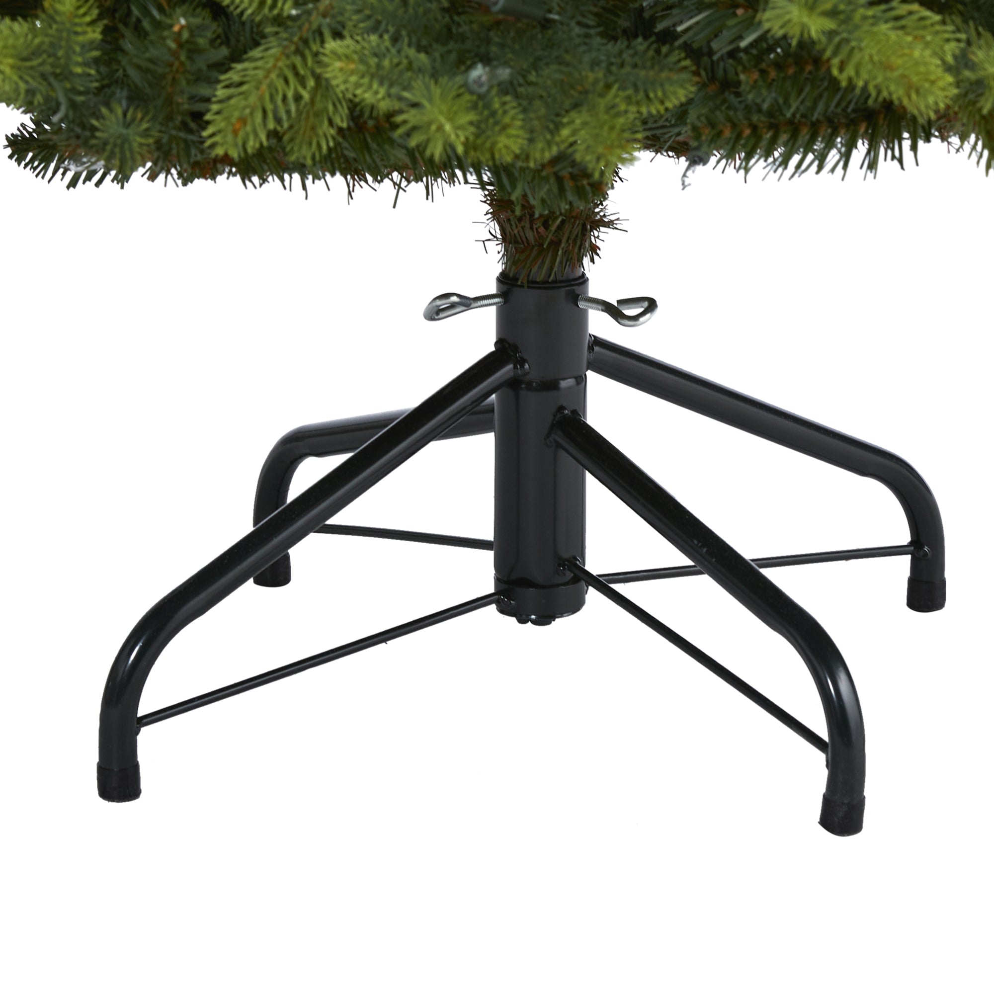 Create a traditional holiday scene in your home or office with the help of this artificial Christmas tree. Completely maintenance-free, this realistic looking fake Christmas tree boasts a robust silhouette of seasonal evergreens made up of 2303 bendable branch tips for decorating with your own personalized ornaments. Arriving pre-strung with 450 clear LED lights to eliminate tangles and carefully stabilized on a metal stand, this traditional 6' tall artificial Christmas tree will not only make decorating a breeze but ensure your home is always seasonally attired for years to come.