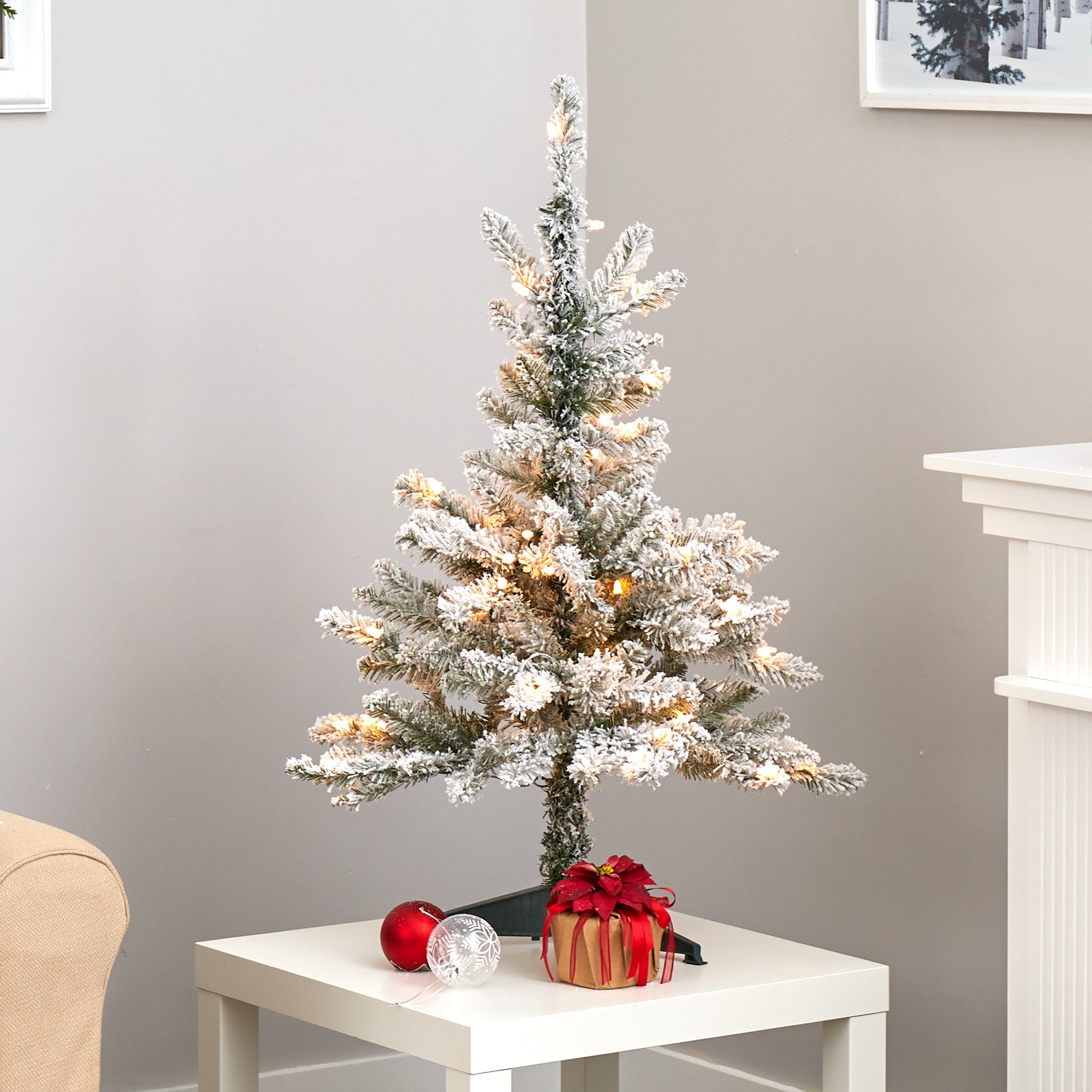 3' Flocked West Virginia Spruce Artificial Christmas Tree with 50 Clear Lights and 142 Bendable Branches