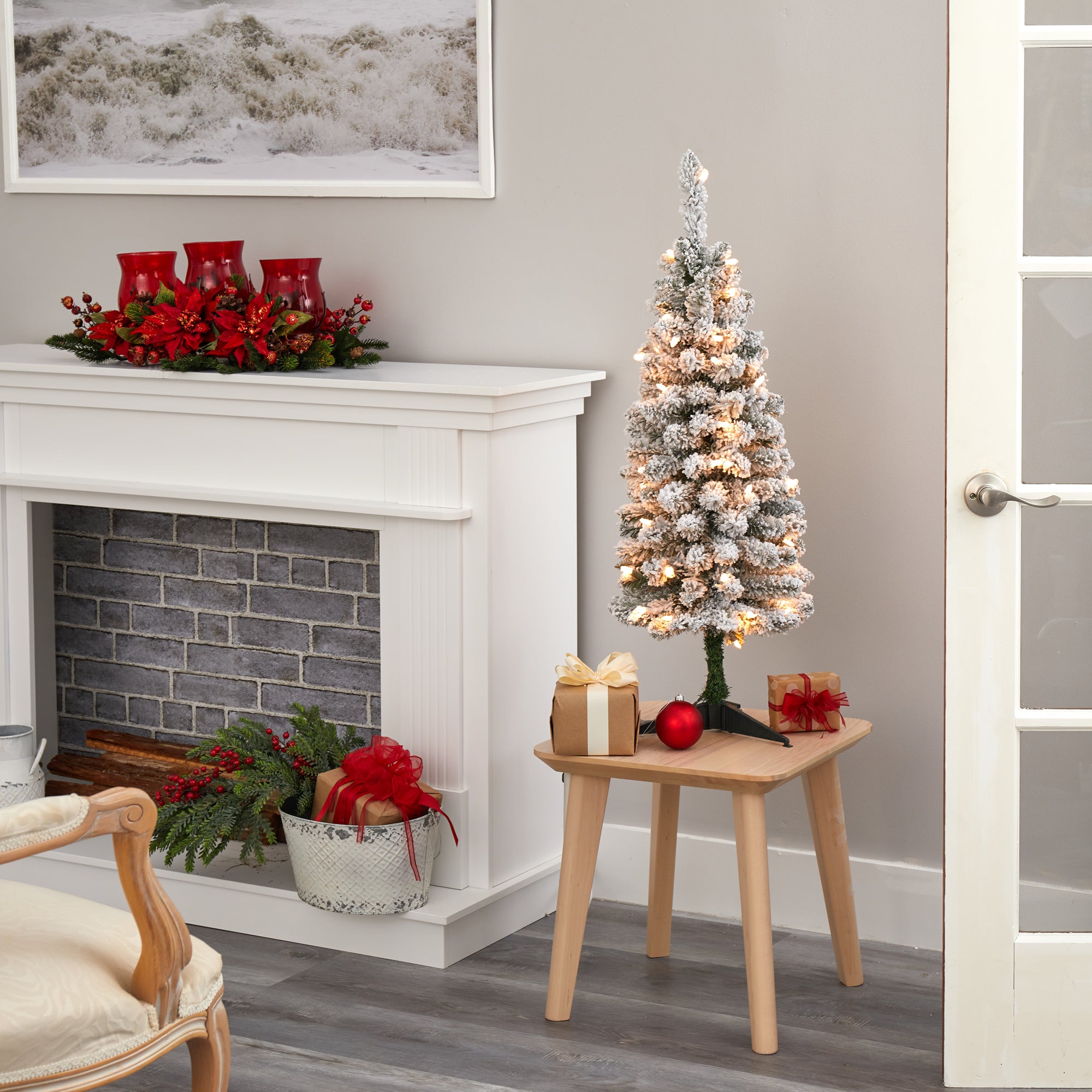 Create a winter wonderland scene in a limited space environment with the help of this flocked artificial Christmas tree! Perfect for the smallest, tightest spaces because of its narrow, pencil-like design, it boasts a tight silhouette made up of 132 easy-to-bend branch tips for showcasing your favorite holiday ornaments, all beautifully flocked with faux snow to help evoke the ultimate winter setting. Arriving pre-strung with 50 clear LED lights to eliminate tangles and carefully stabilized on a metal stand, this space-saving 3' tall flocked artificial Christmas tree will not only make decorating a breeze but ensure your home is looking picturesque all throughout the holiday season - no matter your space situation.