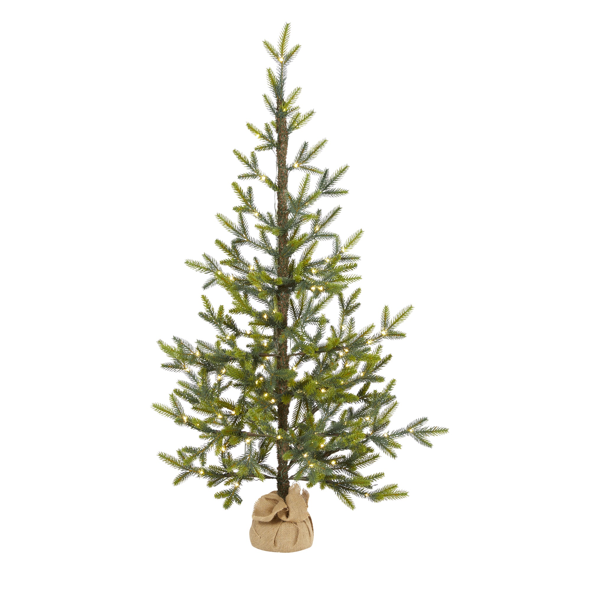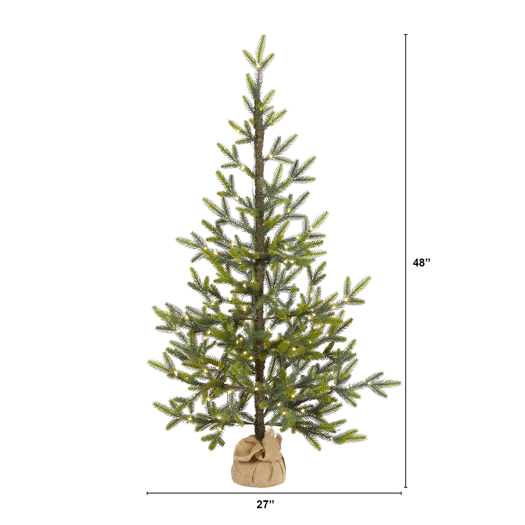 Evoke hints of the holiday spirit on bare surfaces with the help of this natural looking artificial Christmas tree. Sparse by design, this versatile artificial Christmas tree boasts a collection of realistic looking evergreens made up of 403 bendable branches for easy and effortless decorating. Arriving pre-strung with 100 LED lights to eliminate tangles and standing 4' high in a stabilized, burlap-covered base, this artificial Christmas tree would undoubtedly make any space merry throughout the holiday season.