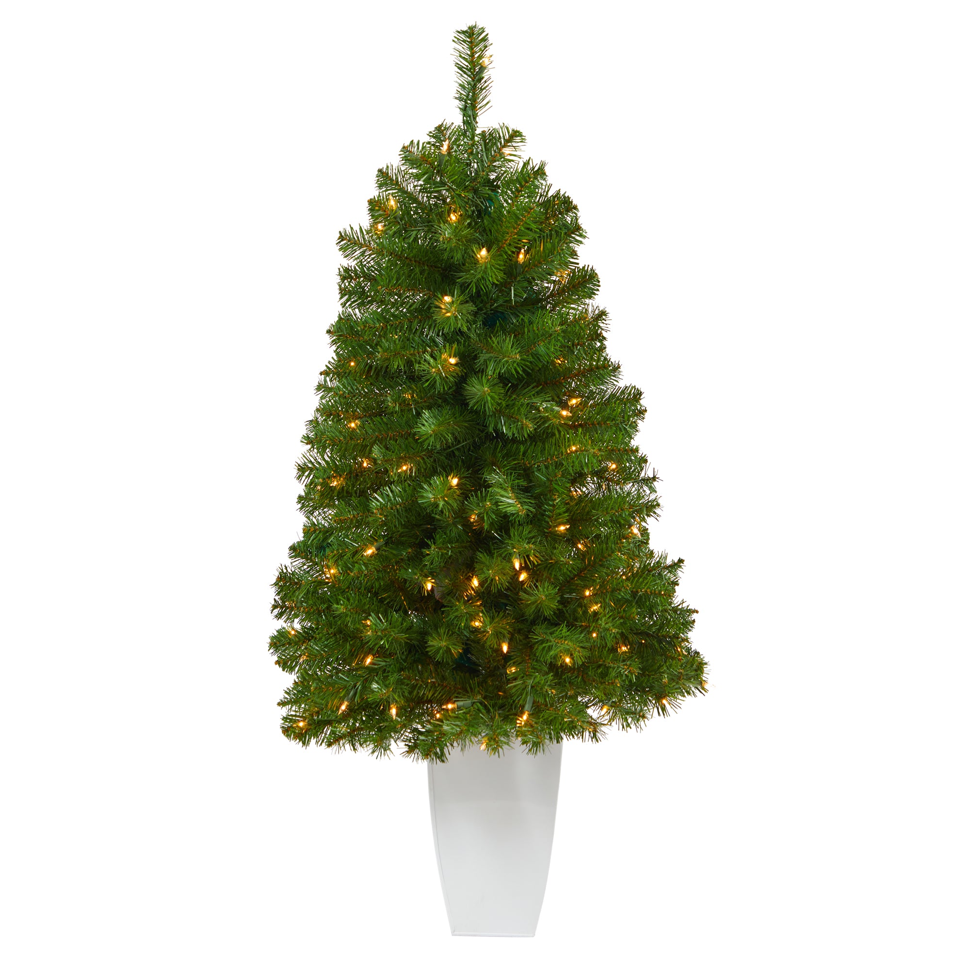 Deck your space with the help of this traditional Virginia Fir Artificial Christmas Tree. Inspired by nature, this tree mimics the real foliage and texture of the fantastic evergreens. With 223 easy-to-bend branches, you can easily shape as you want in your space. To help save you time and money, this tree comes pre-lit with 100 clear lights. Standing 50" from a white metal planter, add all your favorite ornaments and get ready for the presents! Perfect for compact spaces such as apartments, corners, kids' rooms, and entryways.