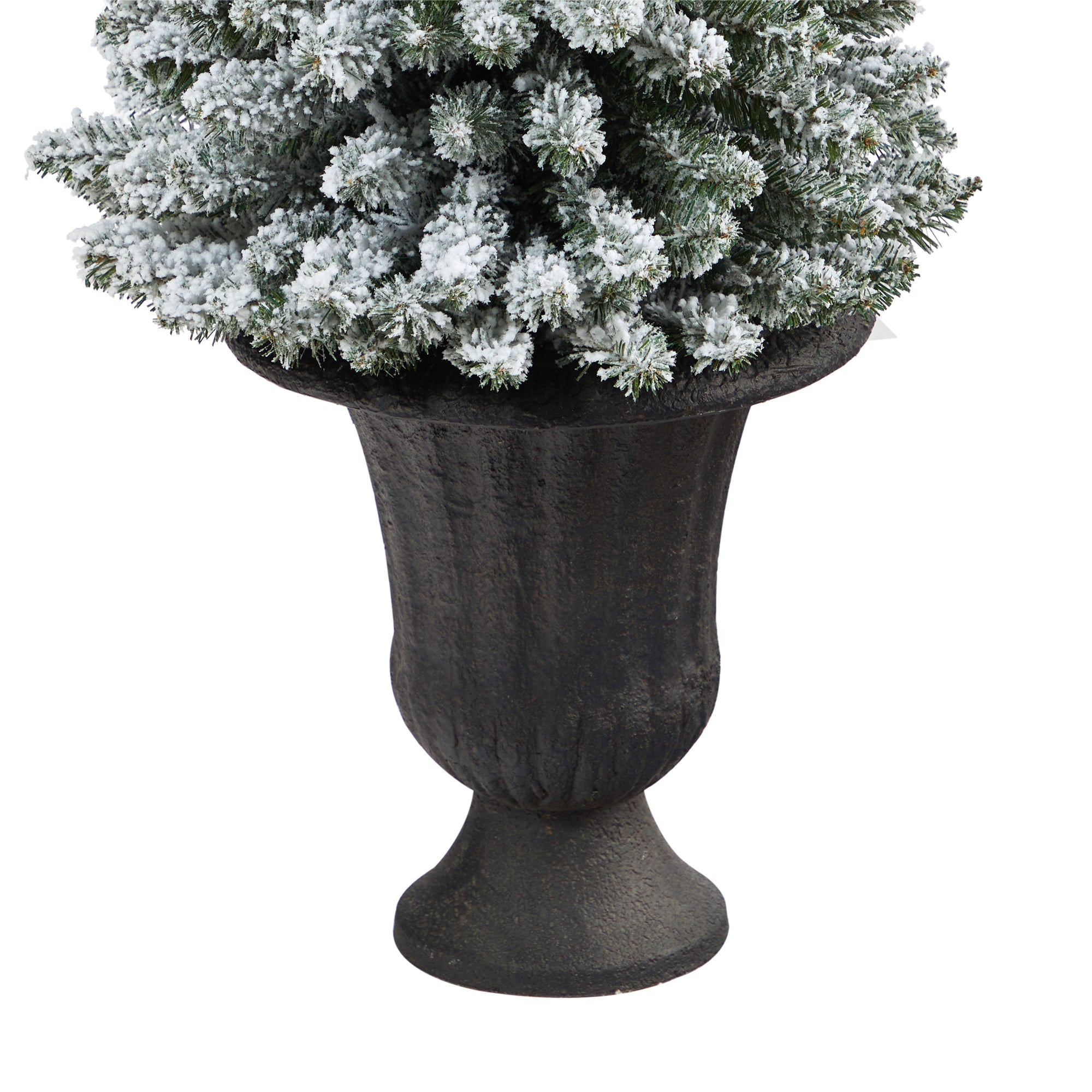 Tight areas deserve some Christmas cheer too. Decorate slim and small spaces such as foyers, corners and apartments with this flocked Pencil Artificial Christmas Tree. Designed by our interior decorators using the highest-quality materials ' this incredibly lifelike tree mimics the spectacular foliage and texture of real trees ' elegantly decorate the 318 easy-to-bend branches with your favorite mini-ornaments. Arriving pre-strung with 200 clear lights that creates that holiday glow. Standing at 62' from a charcoal urn(included in height), spruce up even the tightest spaces.