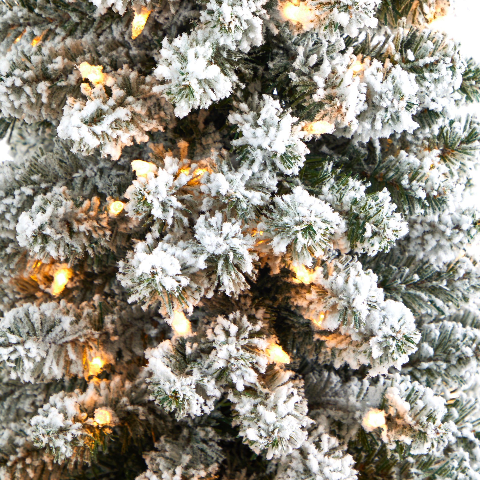 Tight areas deserve some Christmas cheer too. Decorate slim and small spaces such as foyers, corners and apartments with this flocked Pencil Artificial Christmas Tree. Designed by our interior decorators using the highest-quality materials ' this incredibly lifelike tree mimics the spectacular foliage and texture of real trees ' elegantly decorate the 318 easy-to-bend branches with your favorite mini-ornaments. Arriving pre-strung with 200 clear lights that creates that holiday glow. Standing at 5.5' from a decorative urn (included in height), transform the tightest spaces into a winter wonderland.
