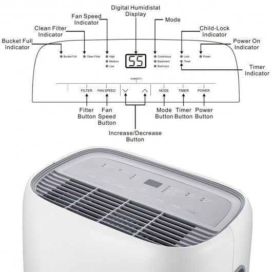 50 Pint Humidity Control Dehumidifier with Air Filter