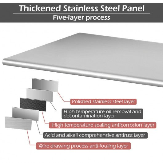 Specification: Material for top panel: Stainless Iron Size of the workstation: 30" x 24.0" x 35.5" (L x W x H) Size of the bottom shelf: 22.0" x 16.0" (L x W) Package includes: 1 x Stainless steel work table