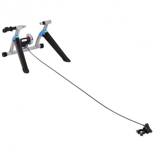 Brand new and high quality Offers effective and convenient indoor training Easily clamps down on quick release or bolts onto your bike's rear wheels Heavy duty iron frame construction New design features separated legs for greater stability 8 levels of magnetic resistance adjustment Magnet resistance control wire used for adjust the magnet level Adjusting the height by the big screws to change the wheel friction Precision-machined roller to reduce tire wear Quiet operation Folding design easy to carry and storage Fixed device easy to install and remove Fits 26-28 inches or 700C bike wheels with quick release The trainer works with road and mountain bikes with 26" 27" 28" and 700C wheels. It features 8 levels of adjustable magnetic resistance to adjust the intensity of your training. Its compact size folds down for easy storage and travel. Minimal assembly required.