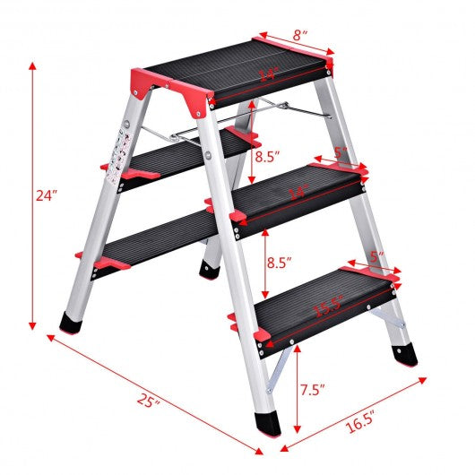 3 Step Aluminum Lightweight Ladder Folding Non-Slip Stool