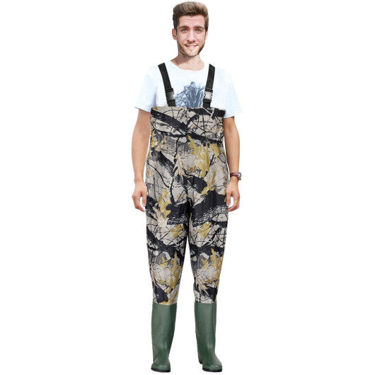 This chest wader is made of 70D waterproof nylon with built-in PVC cover which is wear-resistant tear-resistant not leaking and easy to clean. PVC boots are lightweight and make sure your feet stay warm and dry. H-back adjustable suspenders with durable quick release buckles high quality 2-ply waist belt and flip-out chest pocket provide you more convenience. This chest wader is ideal for fishing hunting farming work or any messy situation. If you are looking for such a chest wader please don't hesitate to buy one! Keep you dry and warm on your fishing adventures hunting farming work or any messy situation 70D nylon with built-in PVC cover waterproof PVC boots with thickened sole and heat welded seams guarantee 100% waterproof reliability Lighter than traditional rubber waders. Fit into any backpack and easy to carry 70D waterproof nylon is wear-resistant tear resistant not leaking and easy to clean PVC boot is more durable and will service you for a long time H-back adjustable suspenders with durable quick release buckles Flip-out chest pocket Different sizes can be chosen