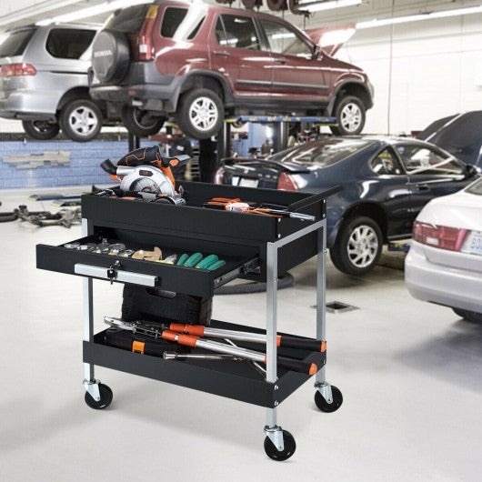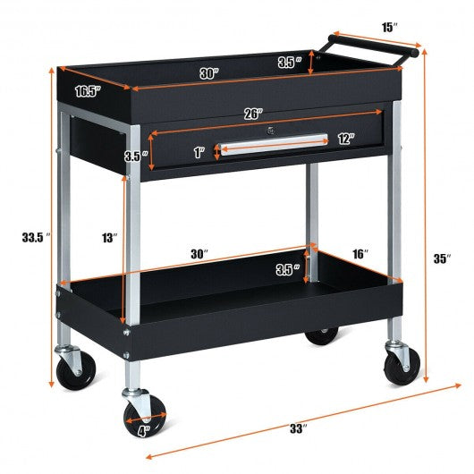 2-Shelf Heavy Duty Tool Cart Service Cart with Lock Drawer & Wheels