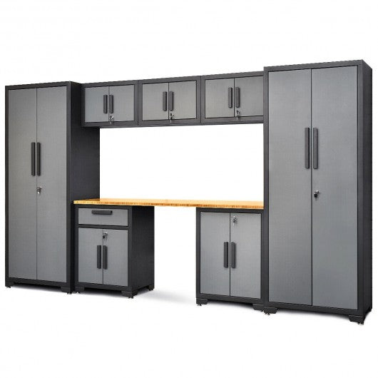 8 pcs Bamboo Worktop 24 Gauge Garage Storage Cabinet Set