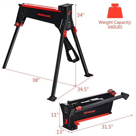 Specification: Color: Red + Black Material: Steel Open dimension: 38� x 34.5� x 34� (L x Wx H) Folding dimension: 31.5� x 13� x 11�(L x W x H) Net weight: 32lbs Weight capacity: 660lbs Maximum clamping Force: 2 200lbs Package includes? 1 x Portable clamping system