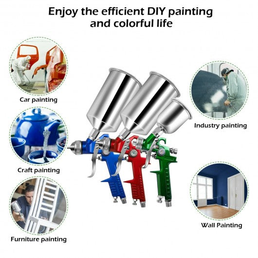 3 HVLP Auto Paint Car Primer Air Spray Gun Kit