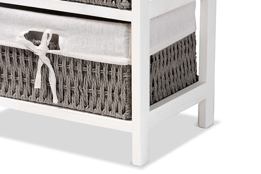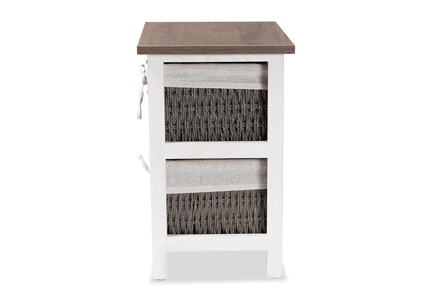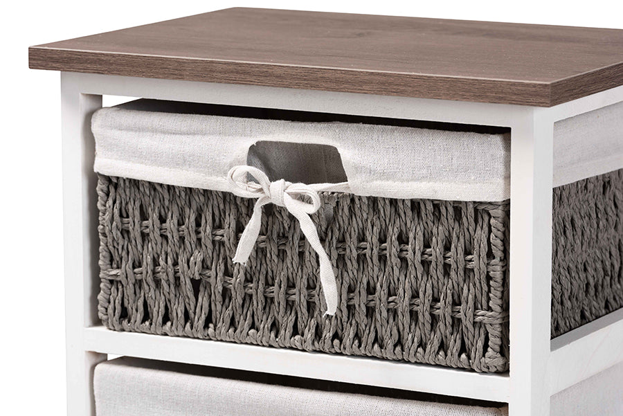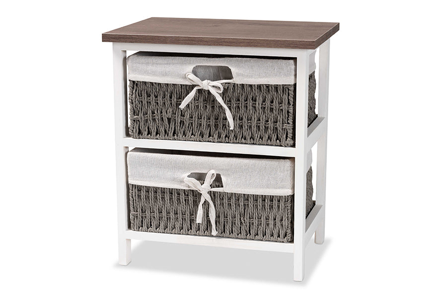 Baxton Studio Terena Modern Transitional Two-Tone Walnut Brown and White Finished Wood 2-Basket Storage Unit