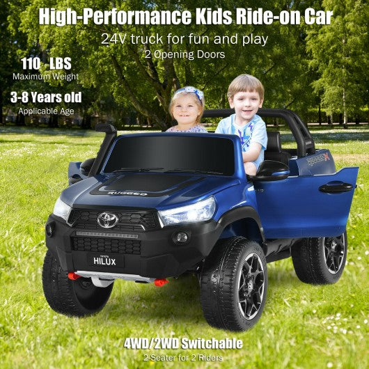 24V Licensed Toyota Hilux Ride On Truck Car 2-Seater 4WD with Remote Painted Blue