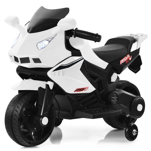 6V Kids Ride on Motorbike with Training Wheels and Music-White