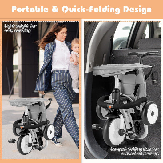 6-in-1 Foldable Baby Tricycle Toddler Stroller with Adjustable Handle-Gray
