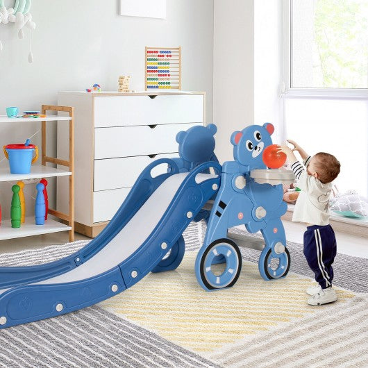 4 in 1 Foldable Baby Slide Toddler Climber Slide PlaySet with Ball-Blue