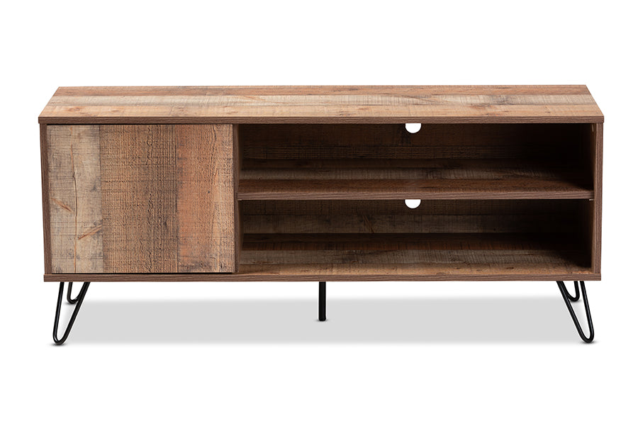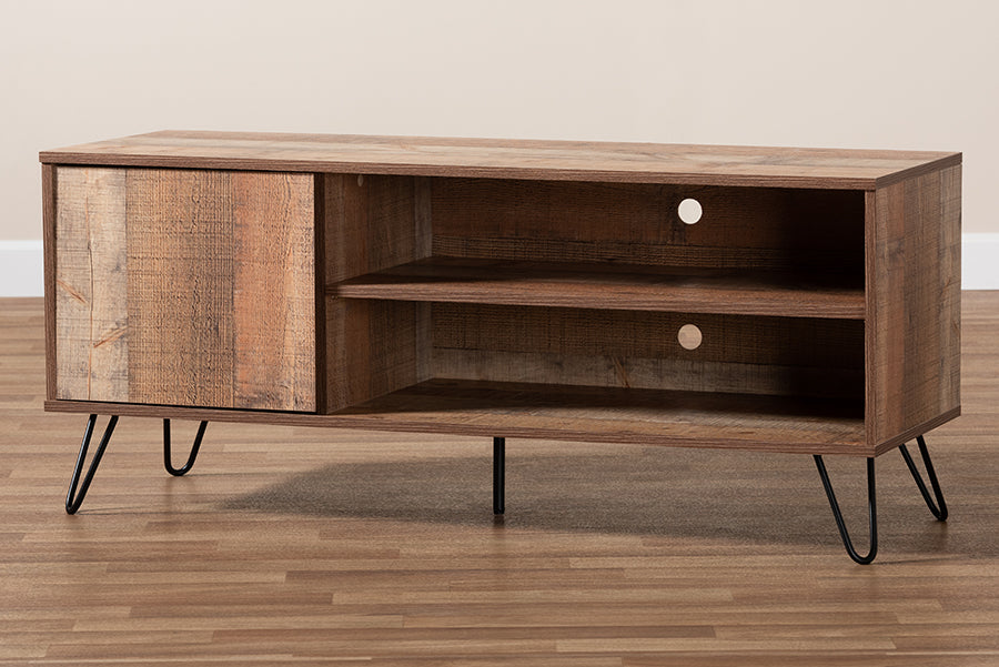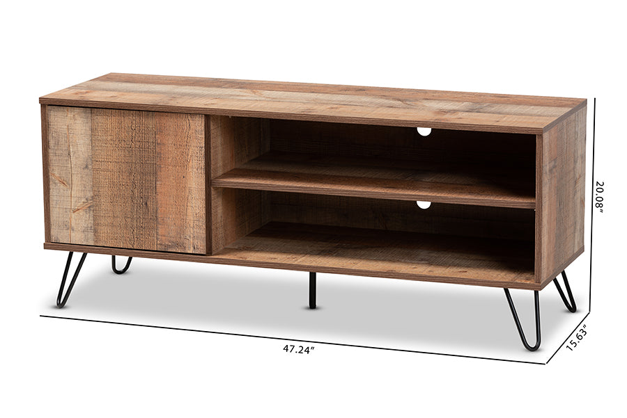 Baxton Studio Iver Modern and Contemporary Rustic Oak Finished 1-Door Wood TV Stand